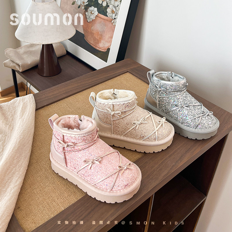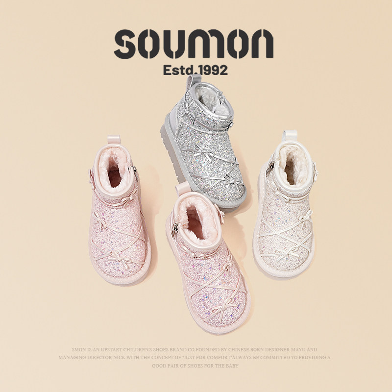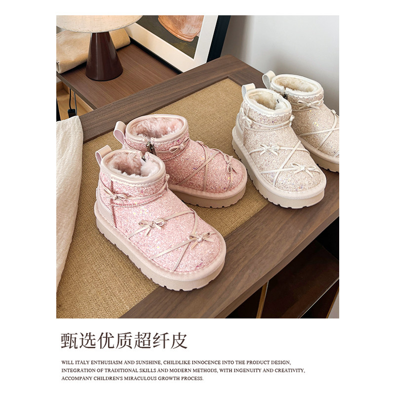 📚 书萌儿童雪地靴女童大棉鞋冬季外穿男童加绒短靴小童防滑雪地棉靴