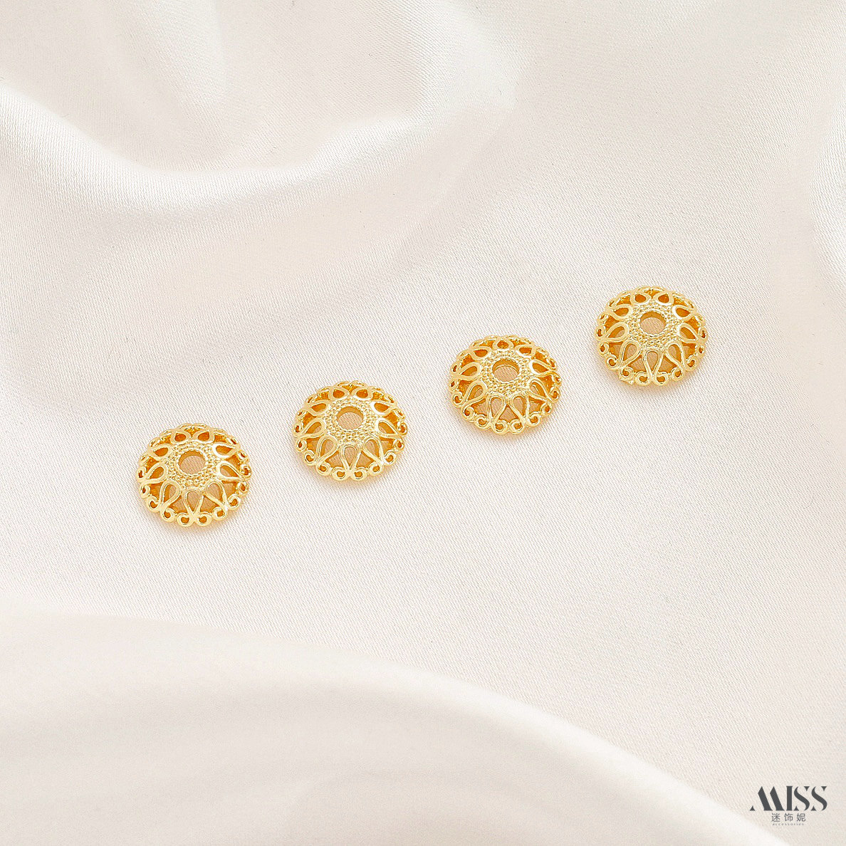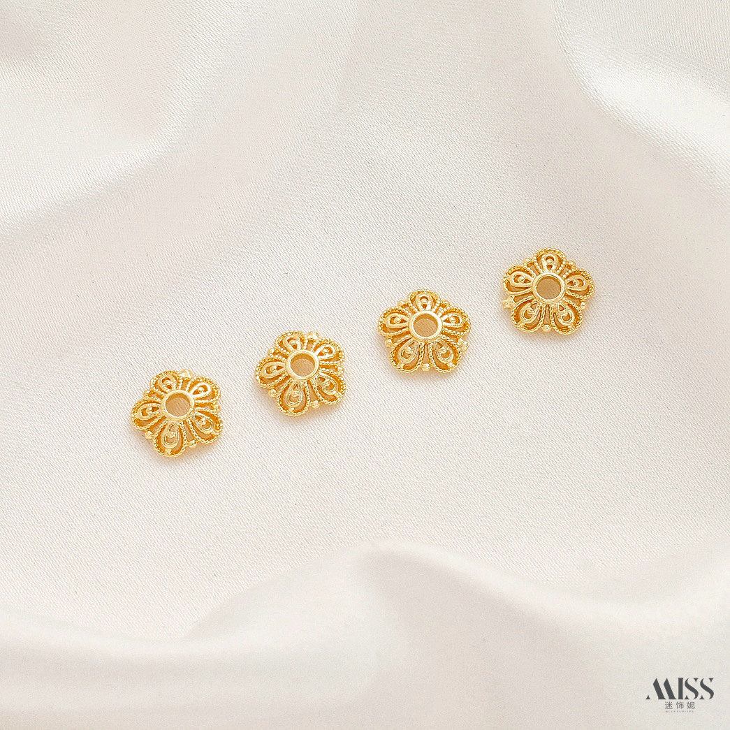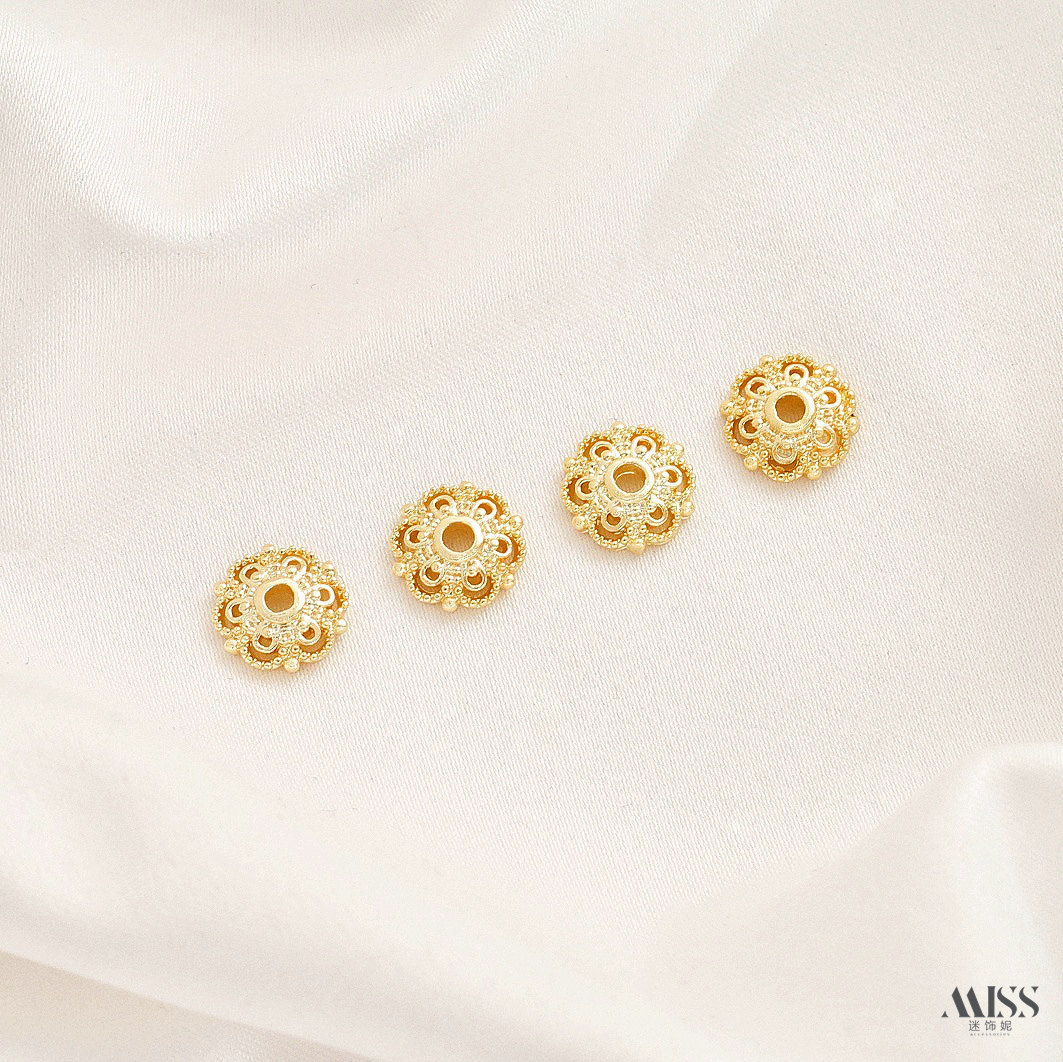 📚 铜镀18K真金保色厚银风车浪边六芒星珠托花托贴片隔片diy串珠配件