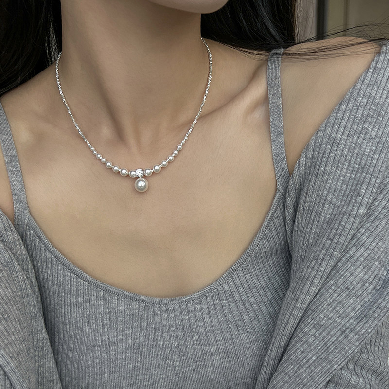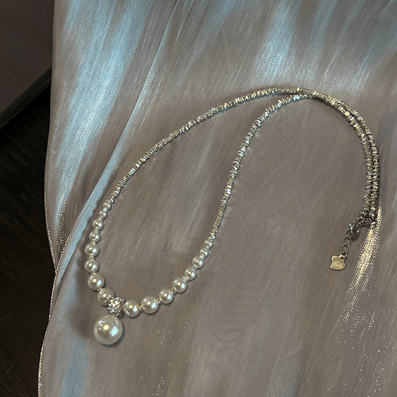 📚 方糖家 原创施家强光珍珠S925纯银渐变项链小众设计高级感锁骨链
