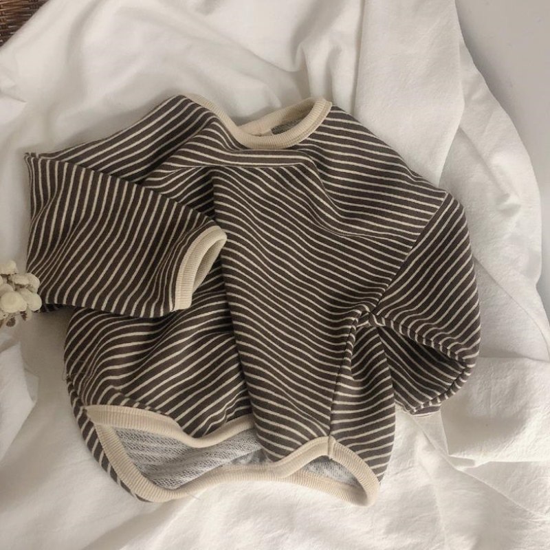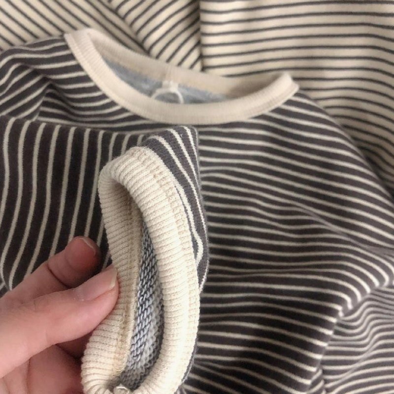 📚 春秋新款韩国儿童男做旧色织间条卫衣女宝宝松垮长袖上衣中小童潮
