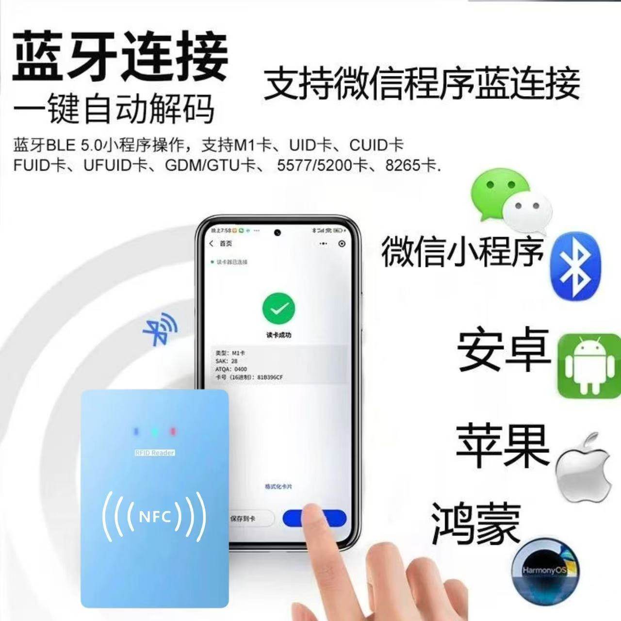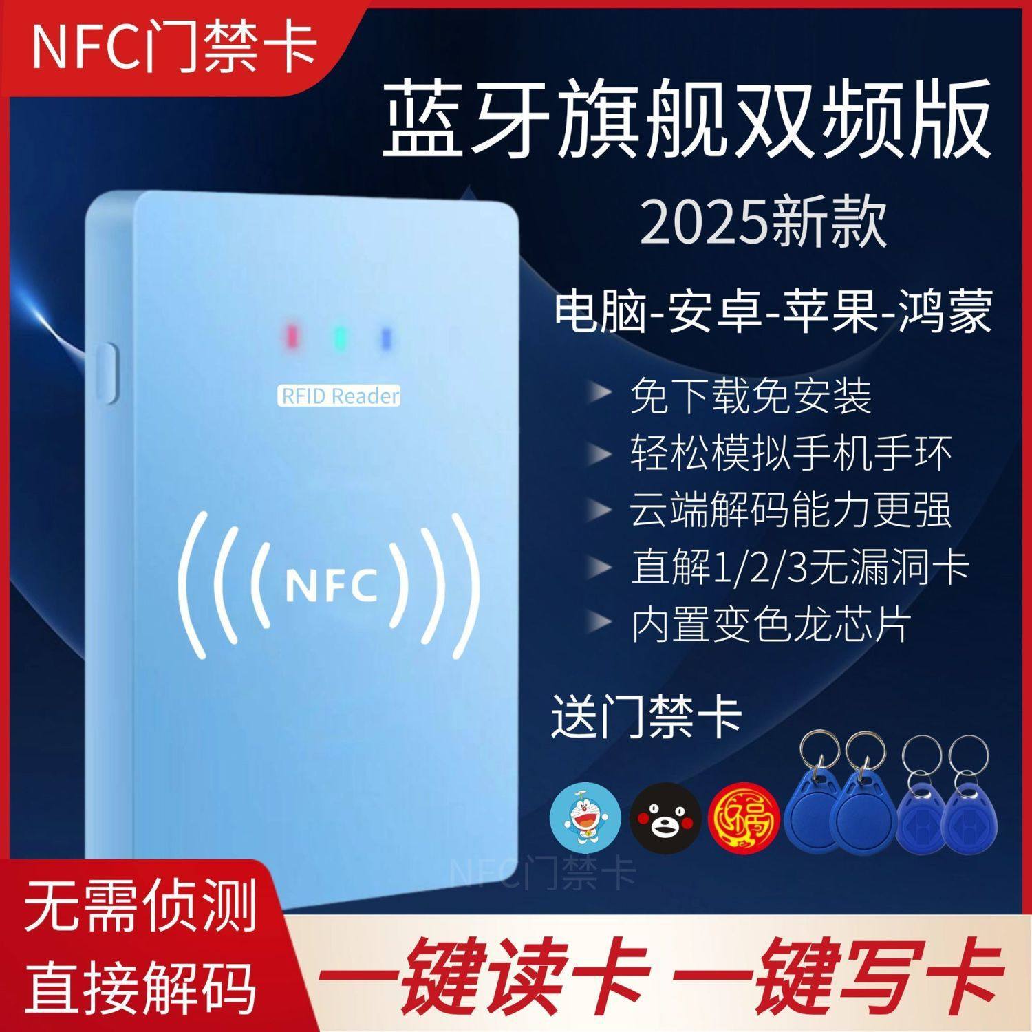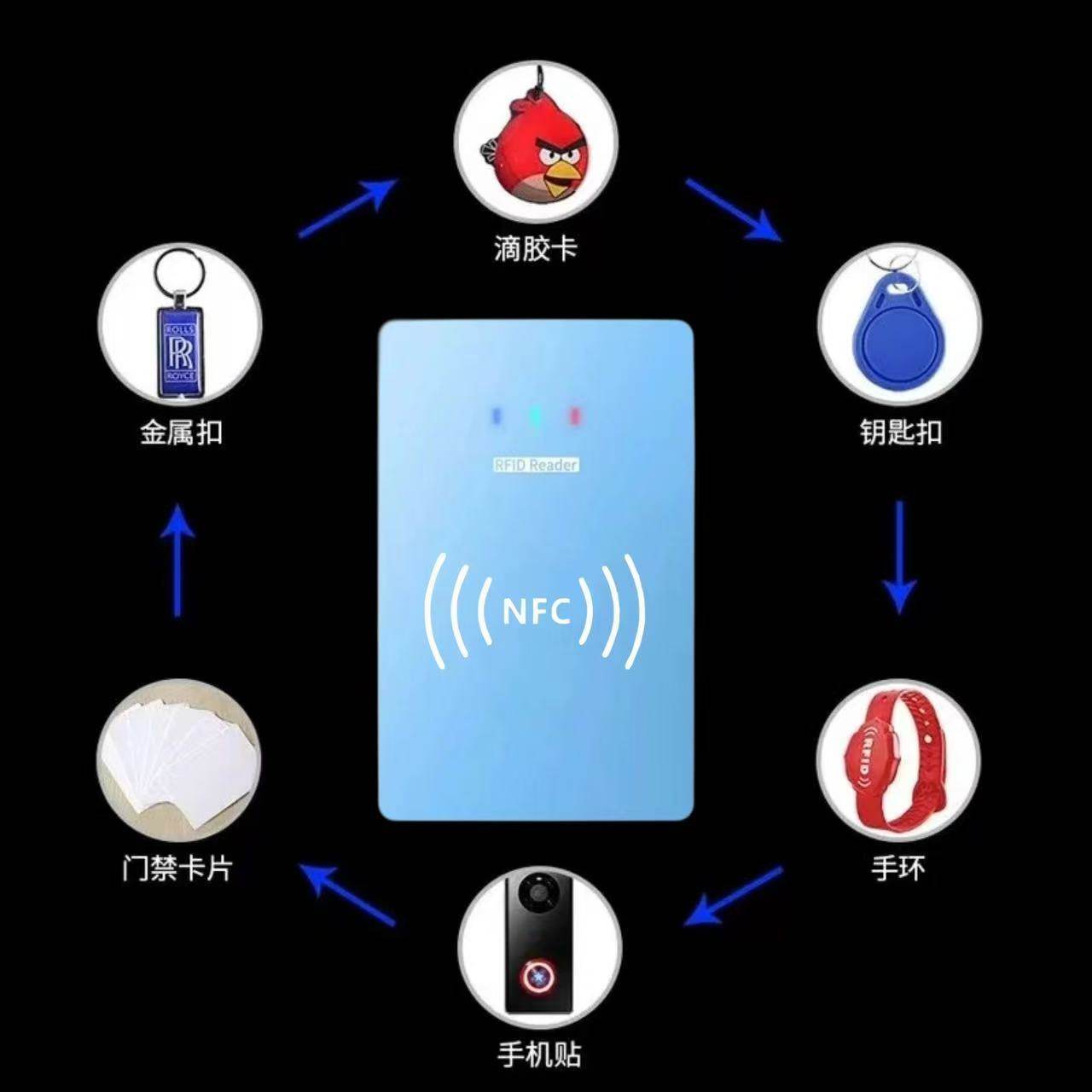 📚 NFC门禁卡复卡器ID IC解码器复制器小区通用配加密卡电梯卡读写器