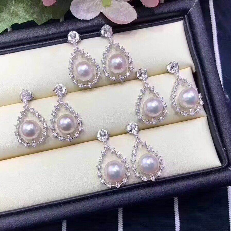 📚 DIY珍珠配件空托 S925纯银 珍珠耳钉 吊坠套装空托 时尚款