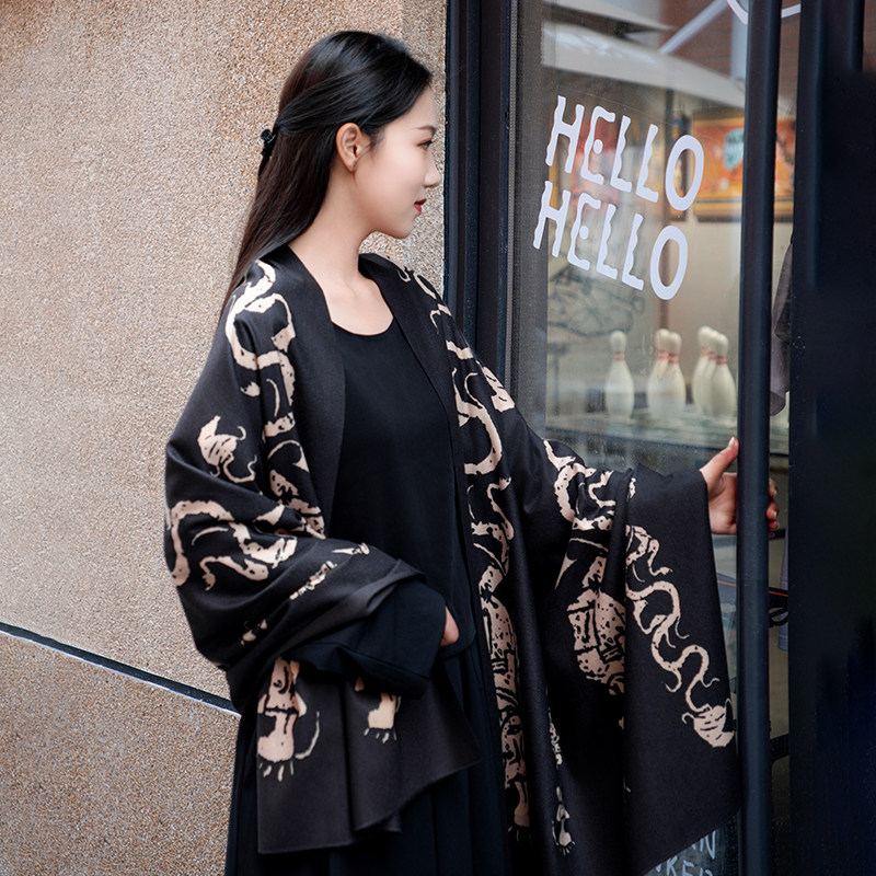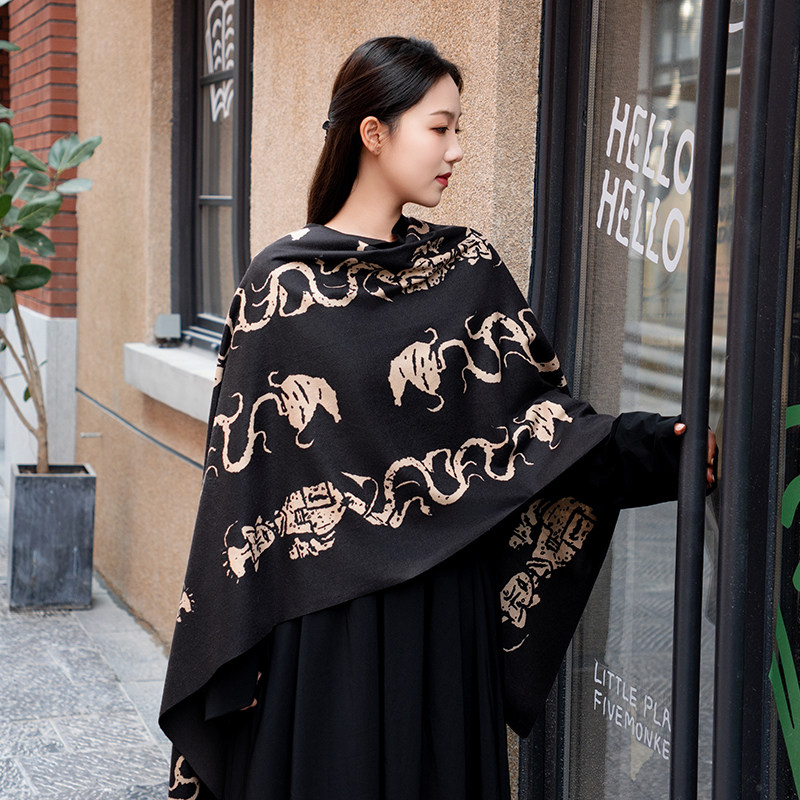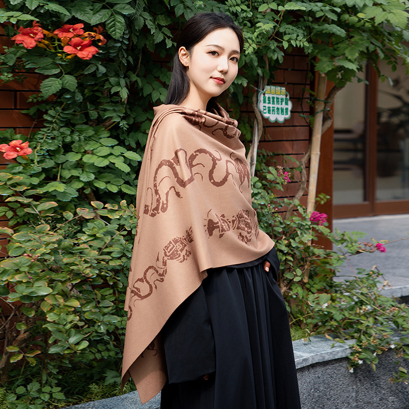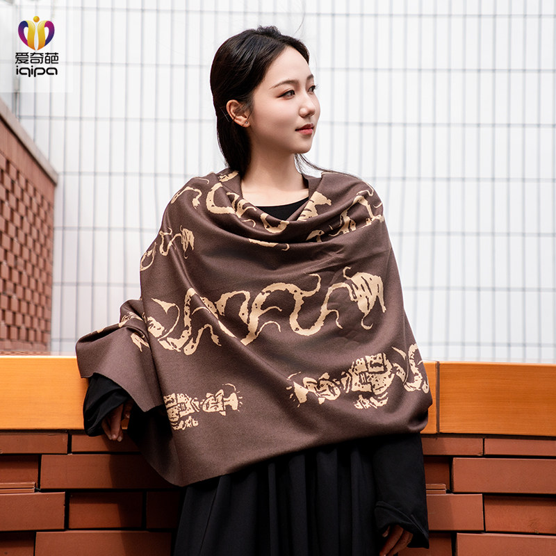 📚 爱奇葩 原创披肩汉砖纹样设计师款羊绒质感围巾双面个性印花围巾