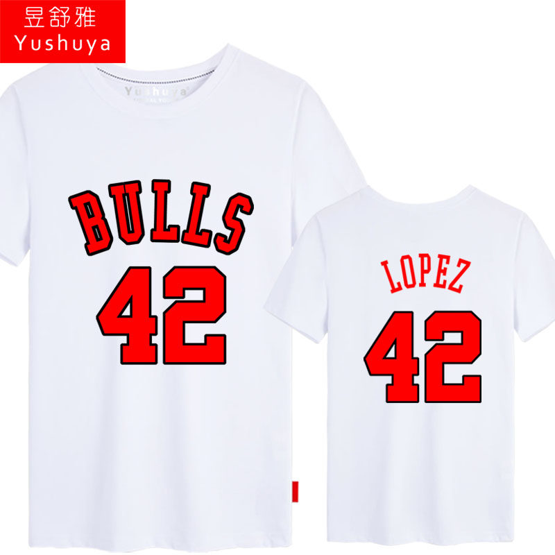 📚 公牛队服t恤短袖男女篮球衣服运动服装扎克拉文半截袖衫休闲体恤