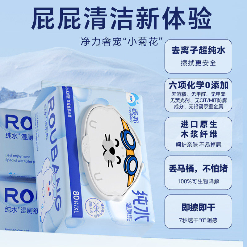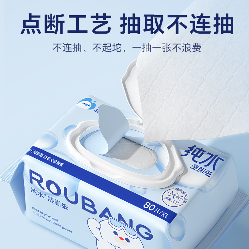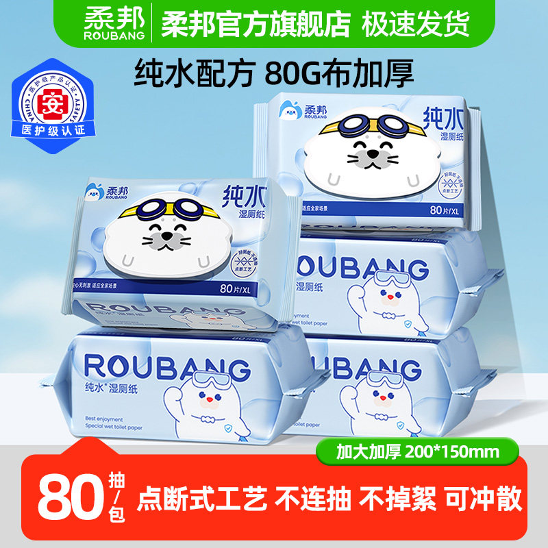 📚 柔邦纯水湿厕纸家庭实惠装80抽男女士专用湿厕巾擦屁股手厕纸湿巾