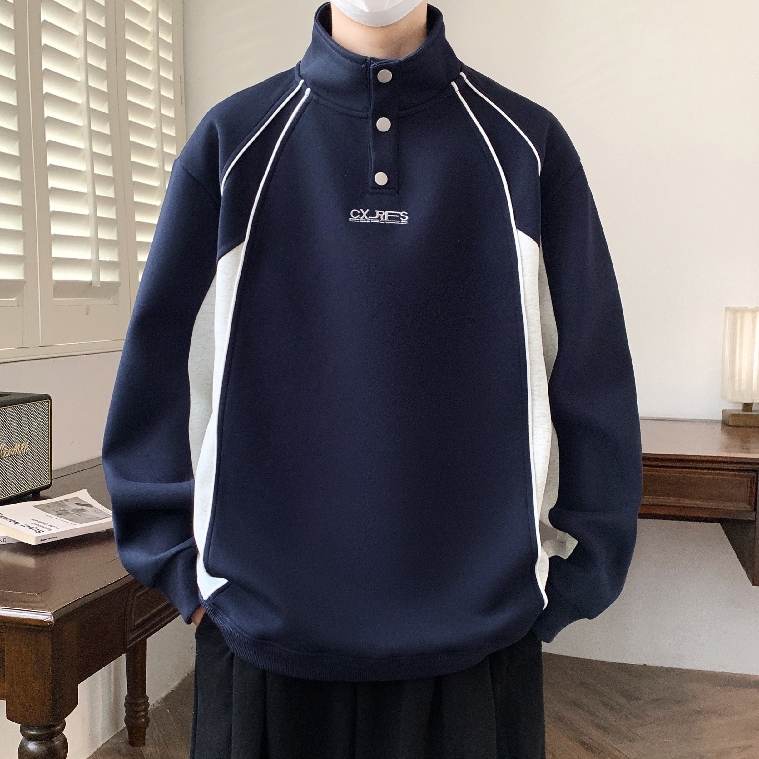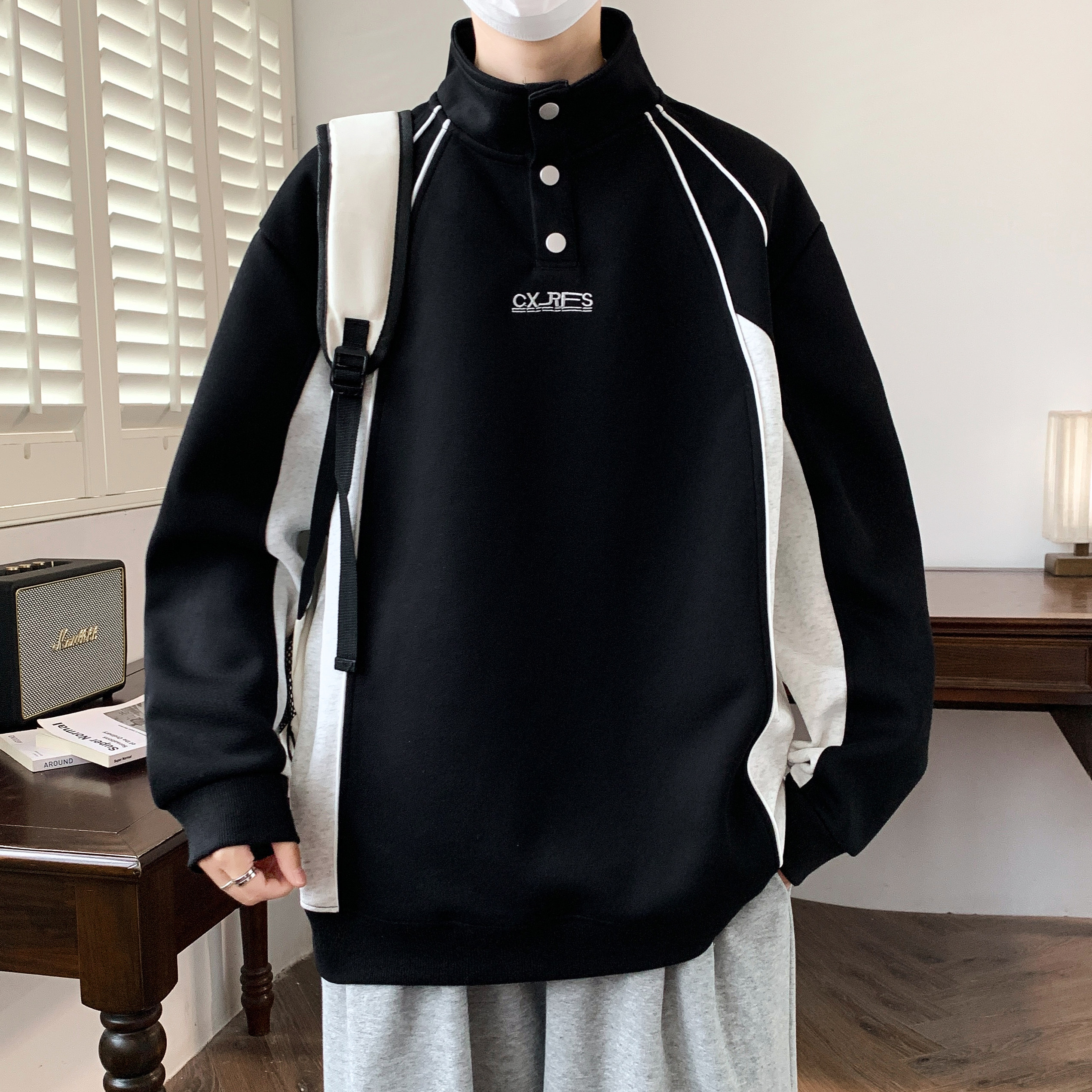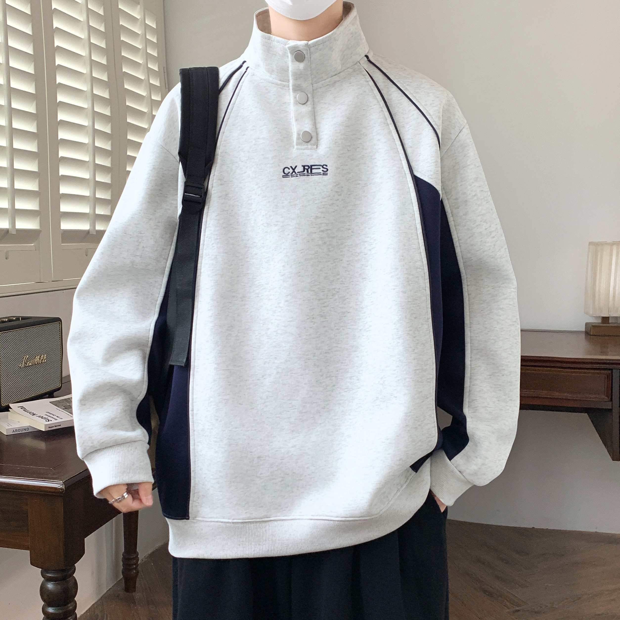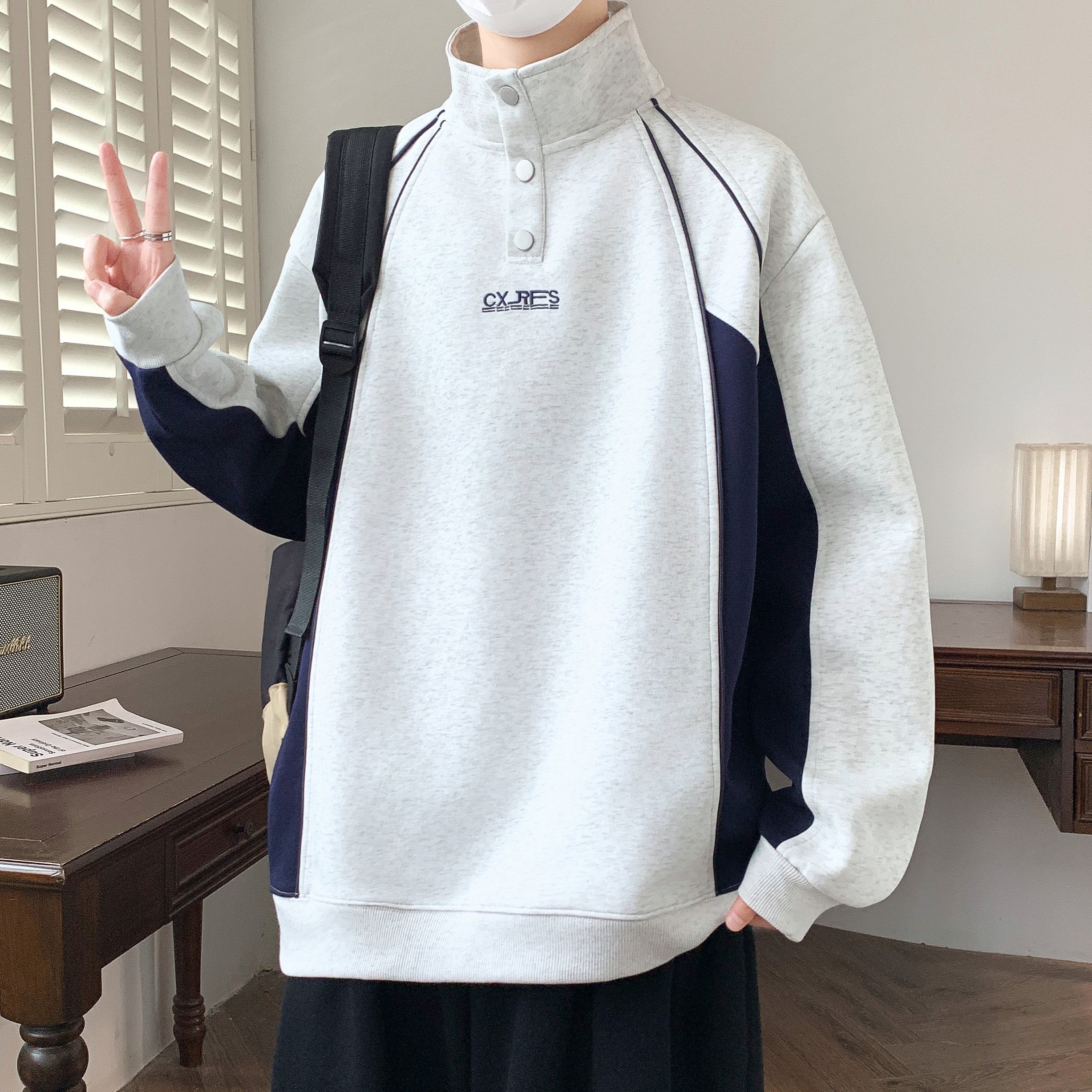 📚 半高领卫衣男款青少年加厚加绒外套初高中学生内搭上衣立领打底衫