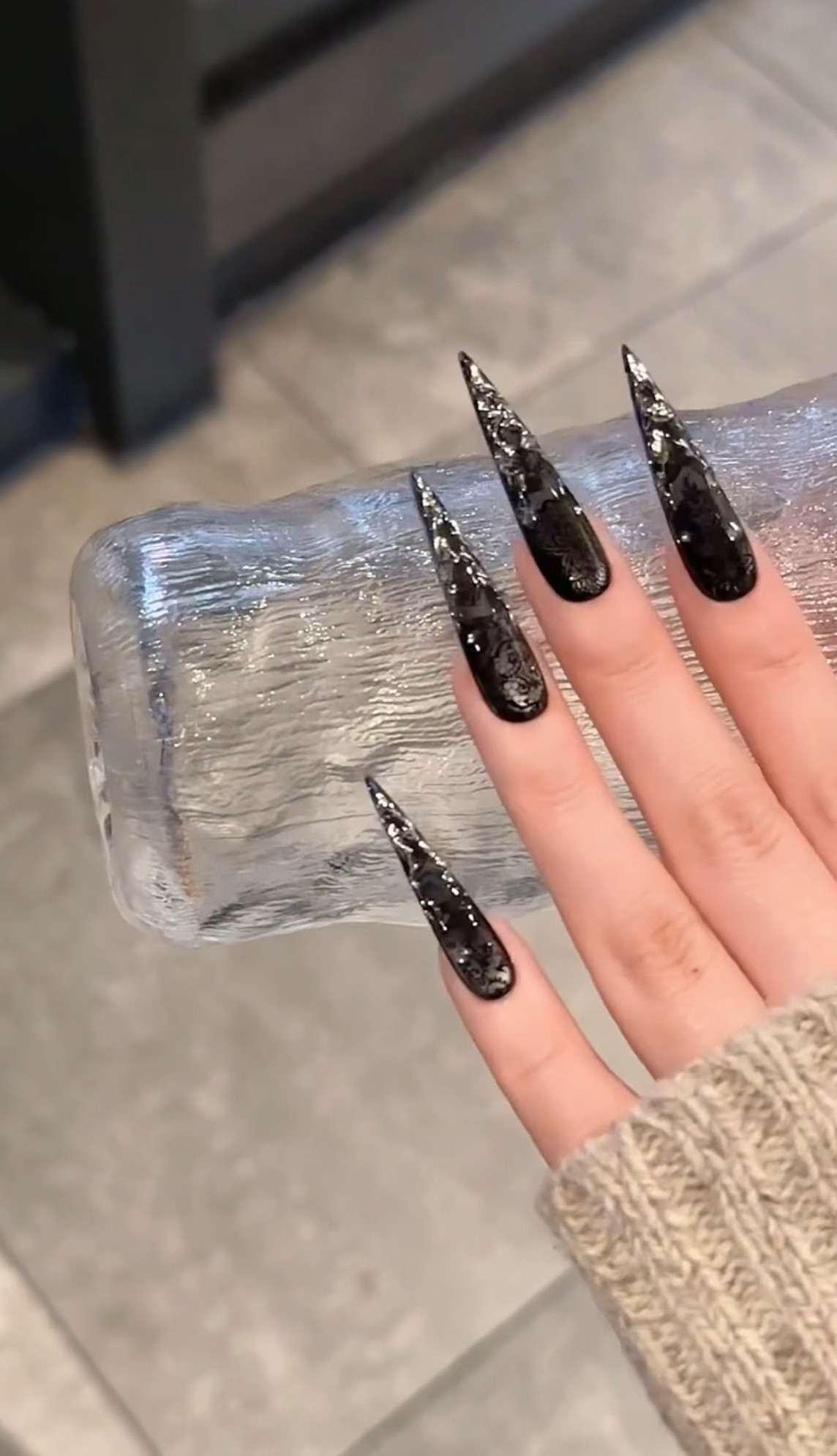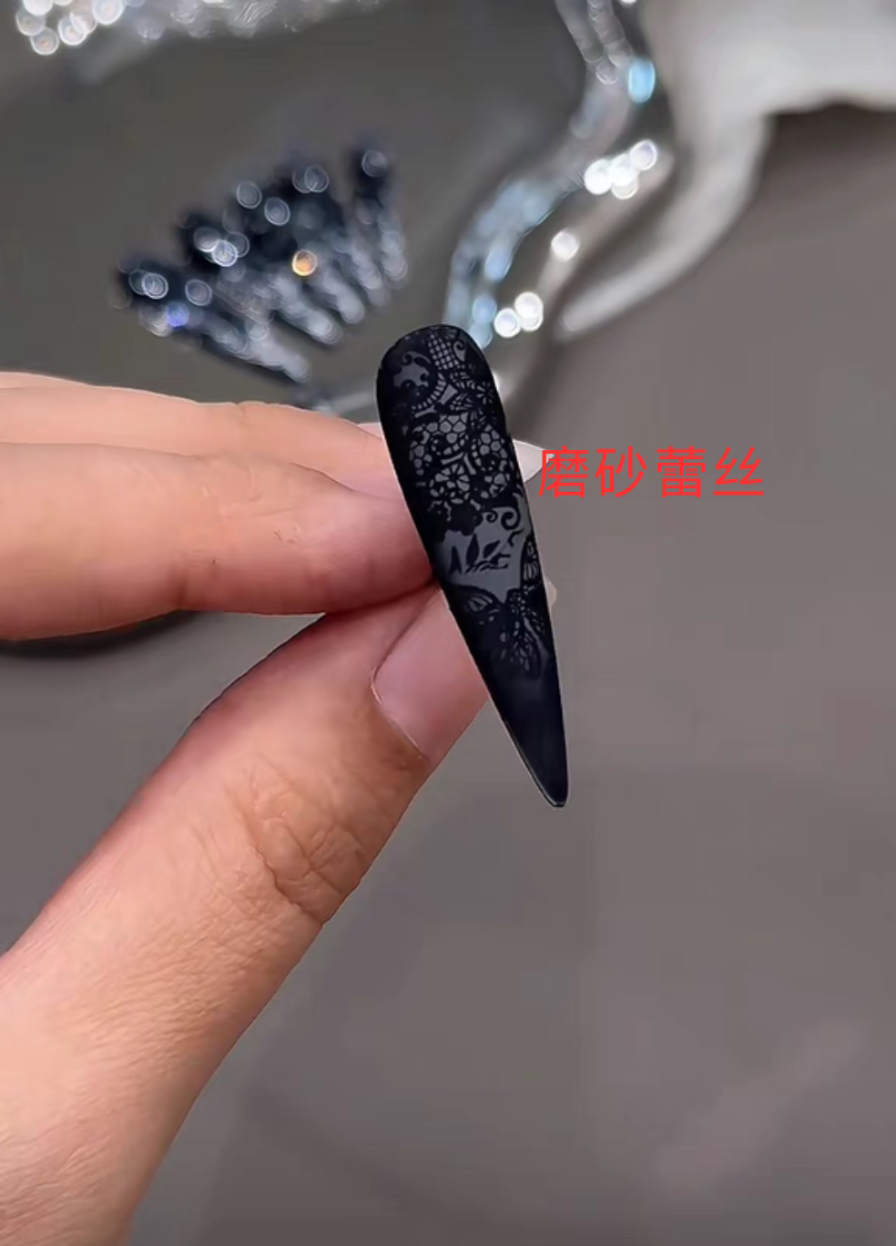 📚 黑色蕾丝风手工穿戴甲美甲贴女王范长杏仁可爱在性感面前一文不值