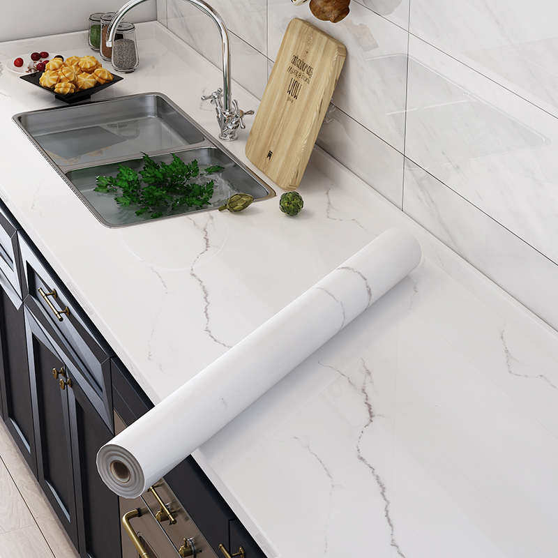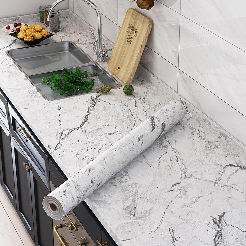 📚 厨房防油贴纸家具翻新墙纸自粘防水大理石灶台面贴膜桌面铝箔PET