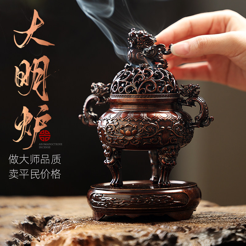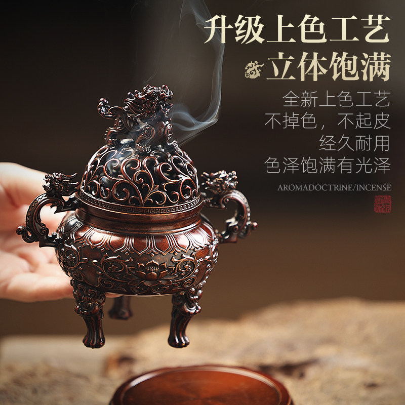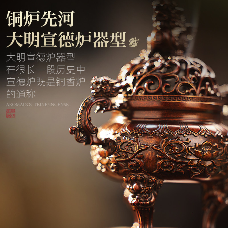 📚 纯铜大明狮子炉香炉狻猊宣德炉家用室内香道茶道用品摆件盘香