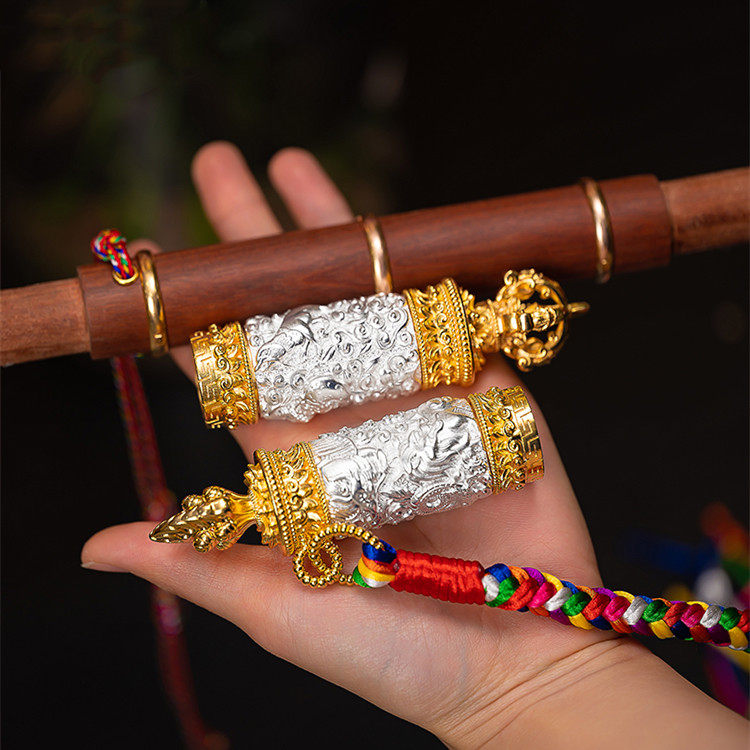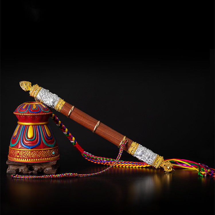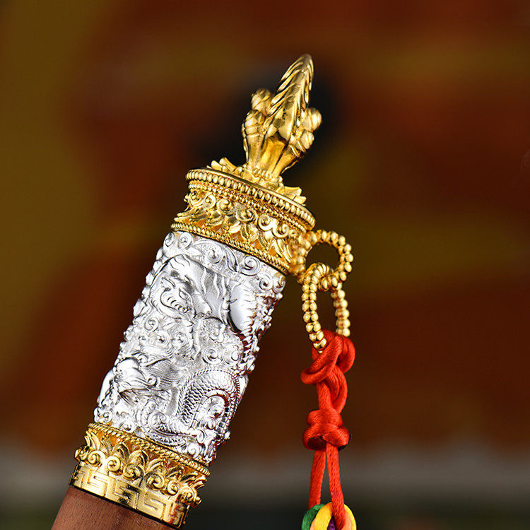 📚 纯铜镀银格萨尔王权杖心想事成如意马鞭事业权杖装藏摆件装饰禅意