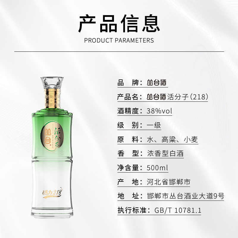 📚 丛台 38度活分子218浓香型白酒500mL粮食酿造固态口粮酒邯郸特产