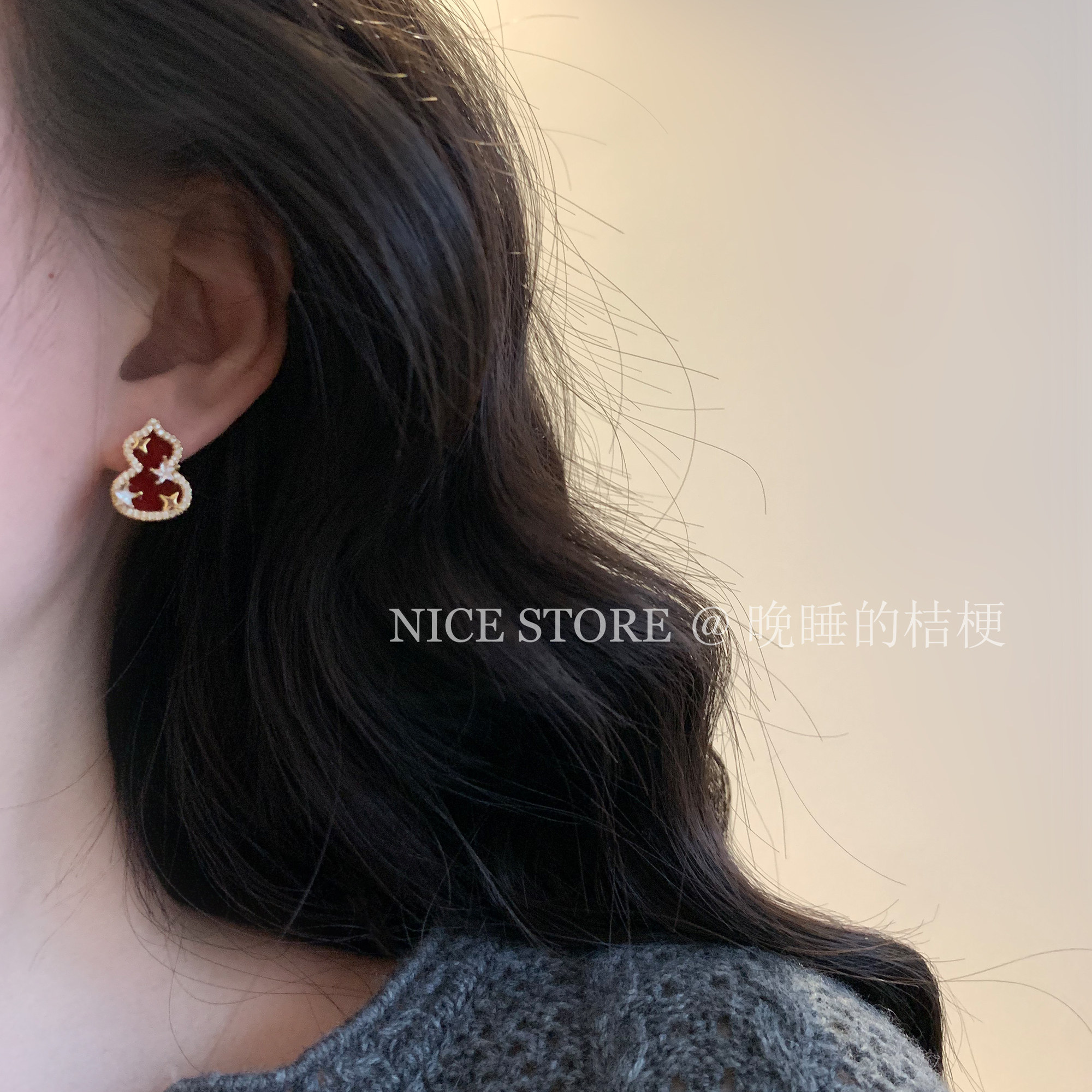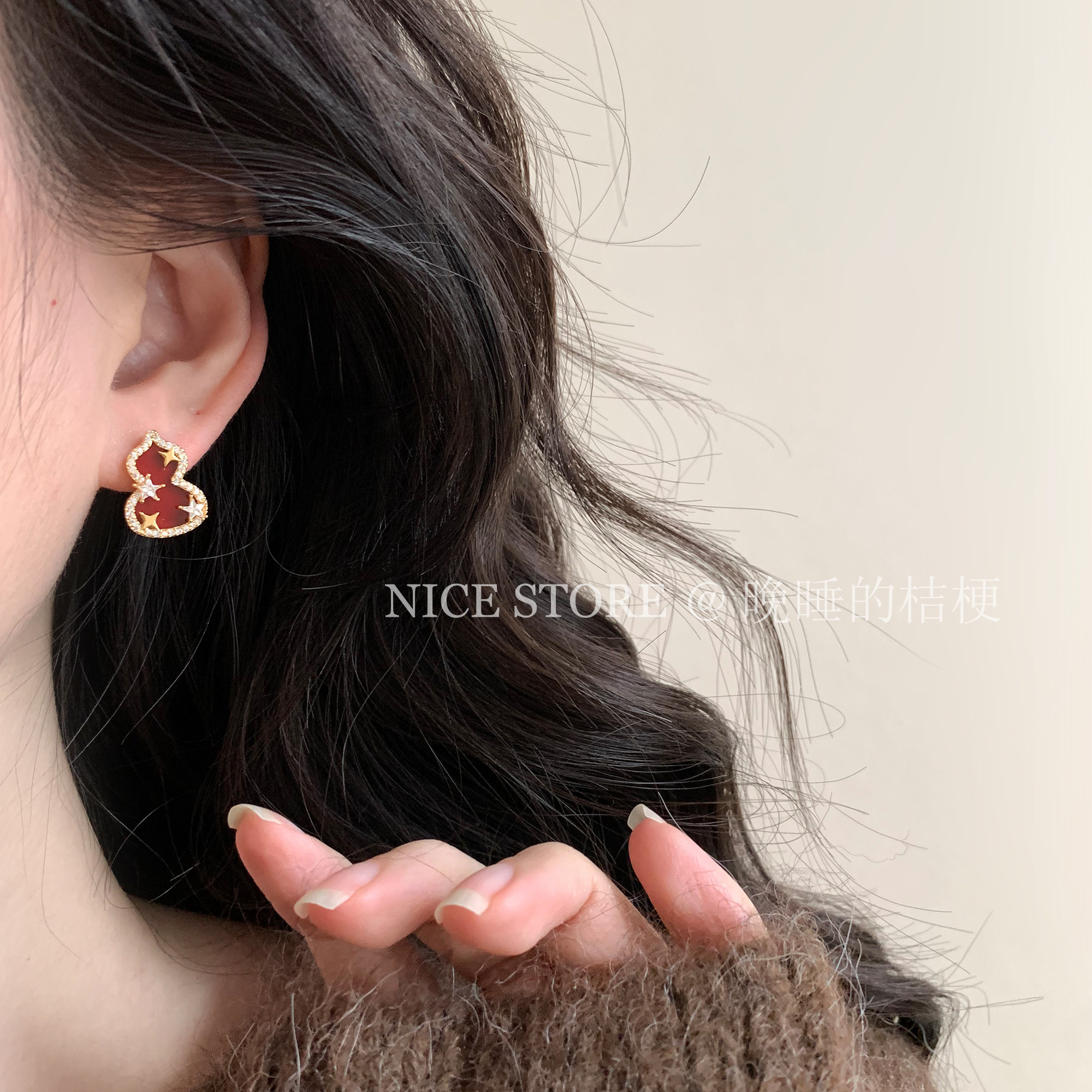 📚 晚睡的桔梗「比目心」新中式复古春秋红色葫芦耳钉轻奢星星耳饰