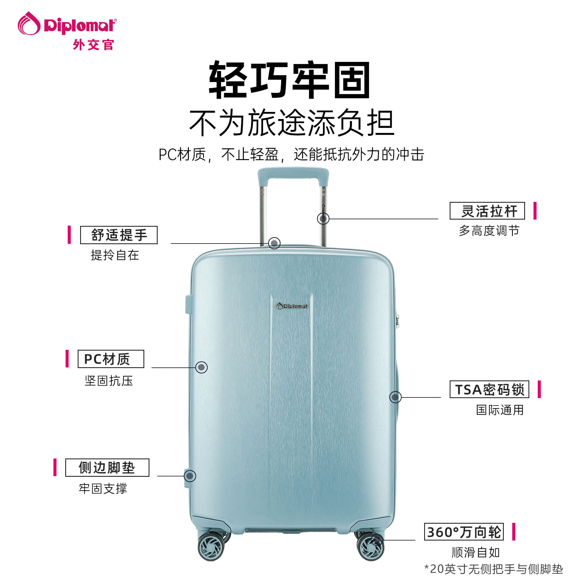 📚 diplomat外交官行李箱PC材质拉杆箱万向轮旅行箱大容量2026新款