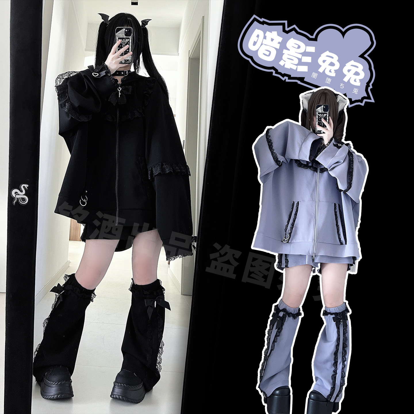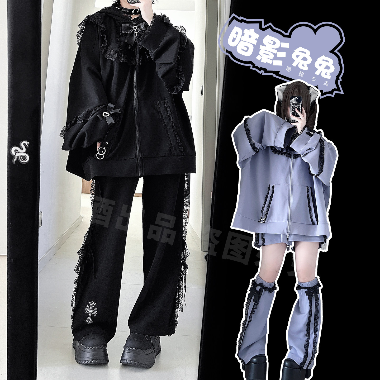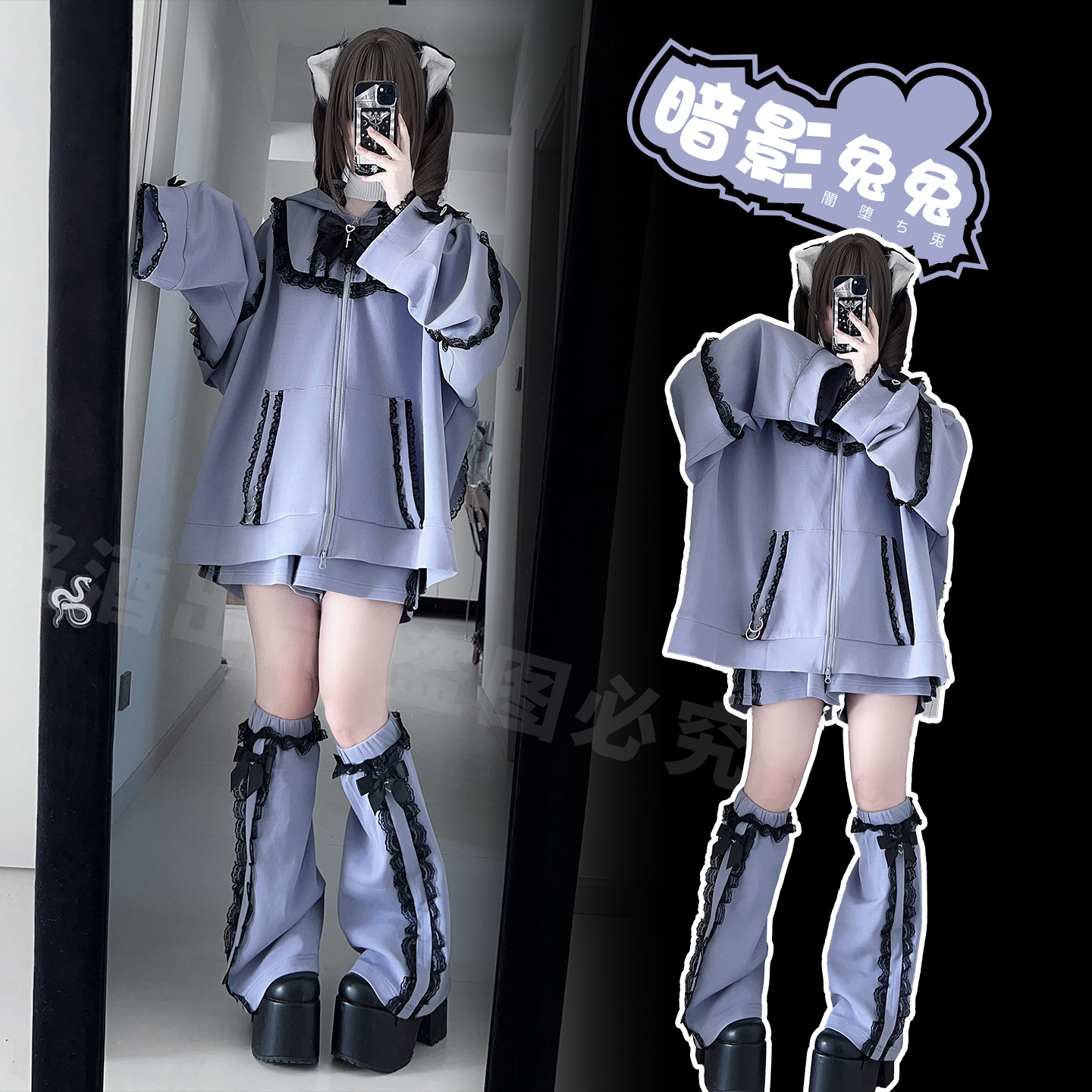 📚 铭酒学园y2k亚文化蕾系蕾服黑紫色秋冬兔兔耳朵连帽卫衣宽松外套