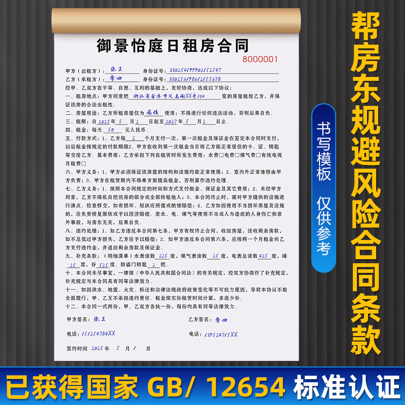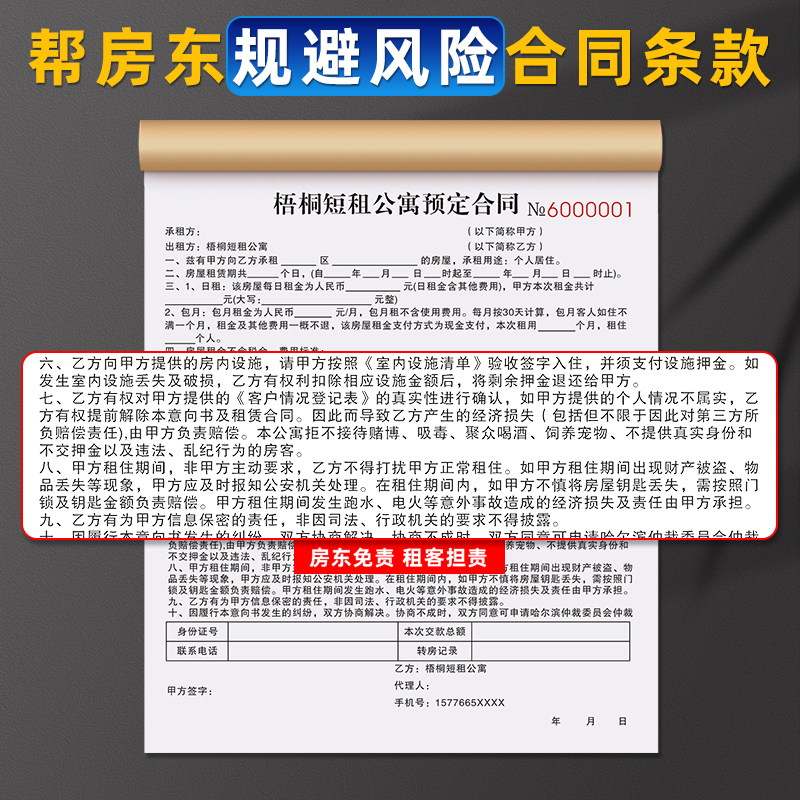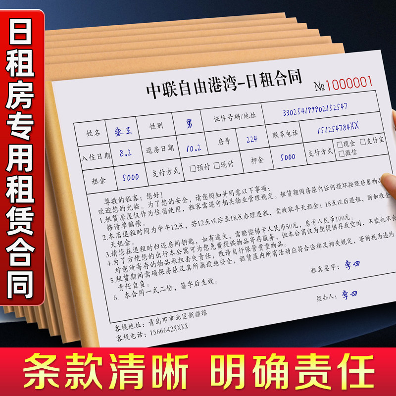 📚 【日租房专用租赁合同】单间房出租租用合约出租房租金水电收据本