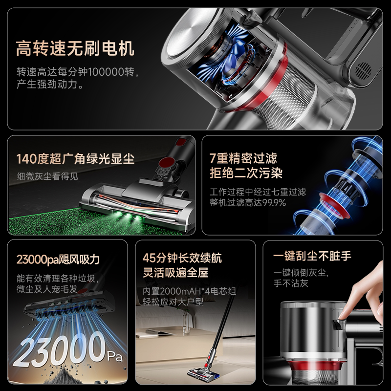 📚 小狗无线吸尘器家用大吸力绿光大功率干湿两用手持无线吸拖一体机