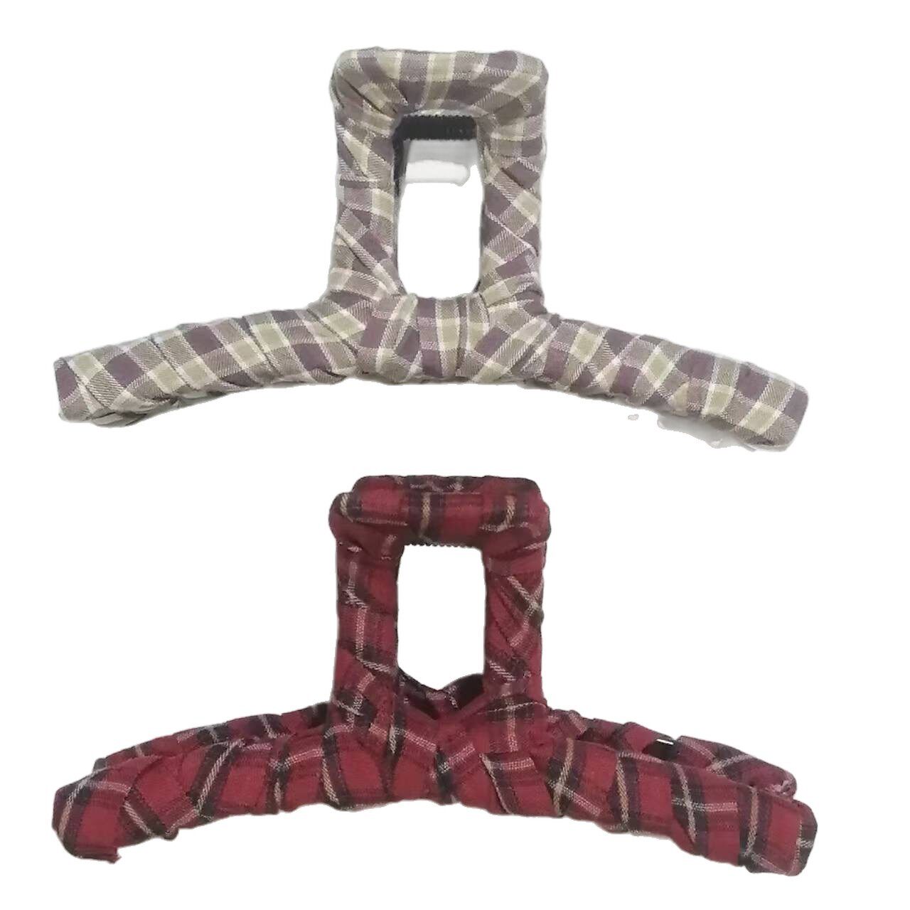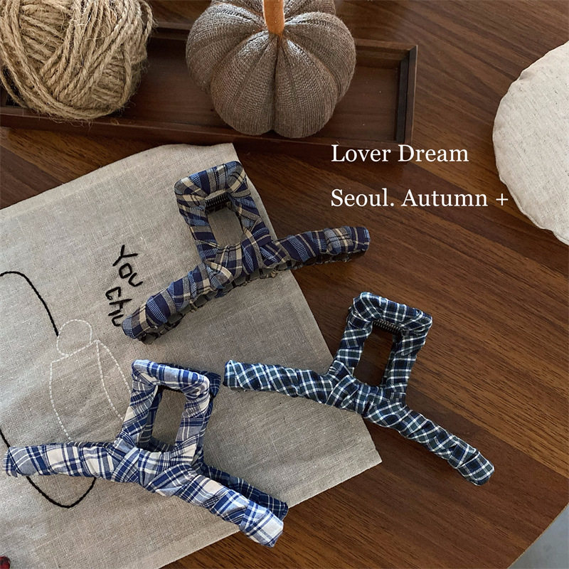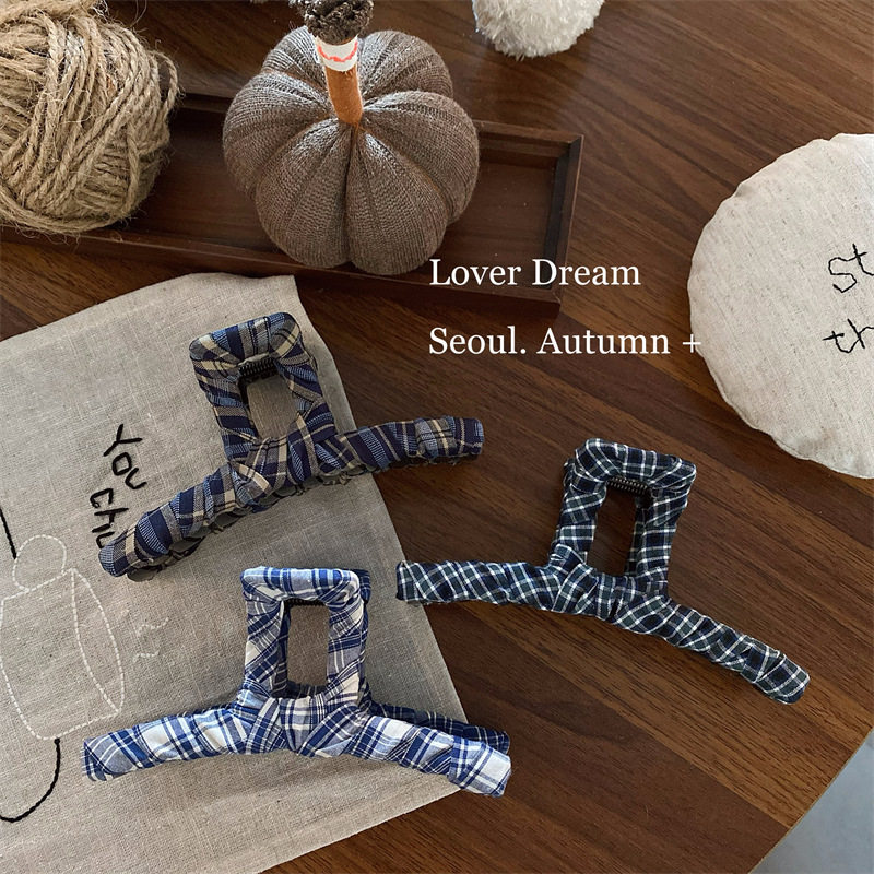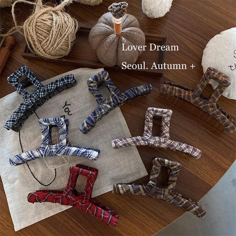 📚 2025热销韩国秋冬新款彩色格子布艺发夹 时尚高级感盘发抓夹鲨鱼