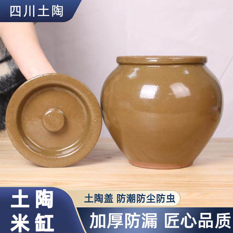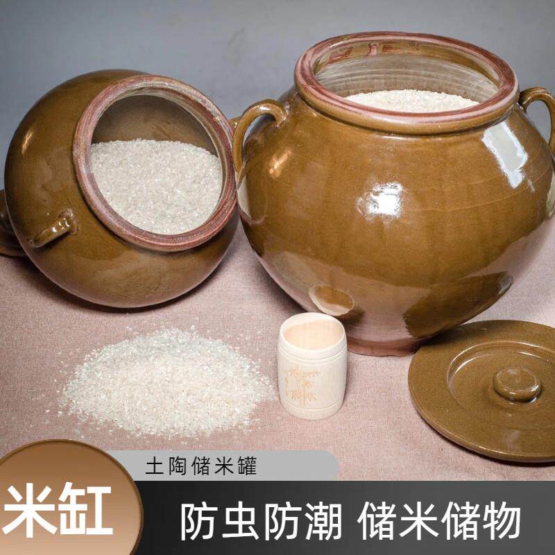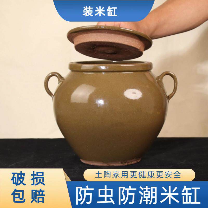 📚 米缸家用陶瓷带盖子防虫防潮密封腌菜坛子陶罐容器面 面缸老式瓦