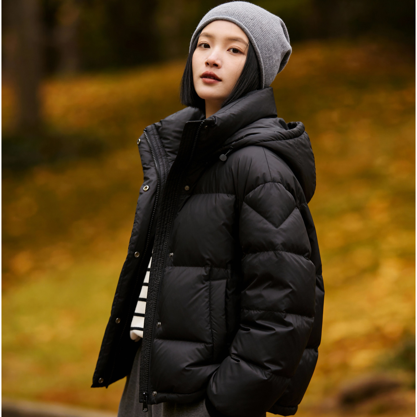 📚 百家好连帽短款白鸭绒羽绒服女士2025冬季新款连帽黑色小个子外套