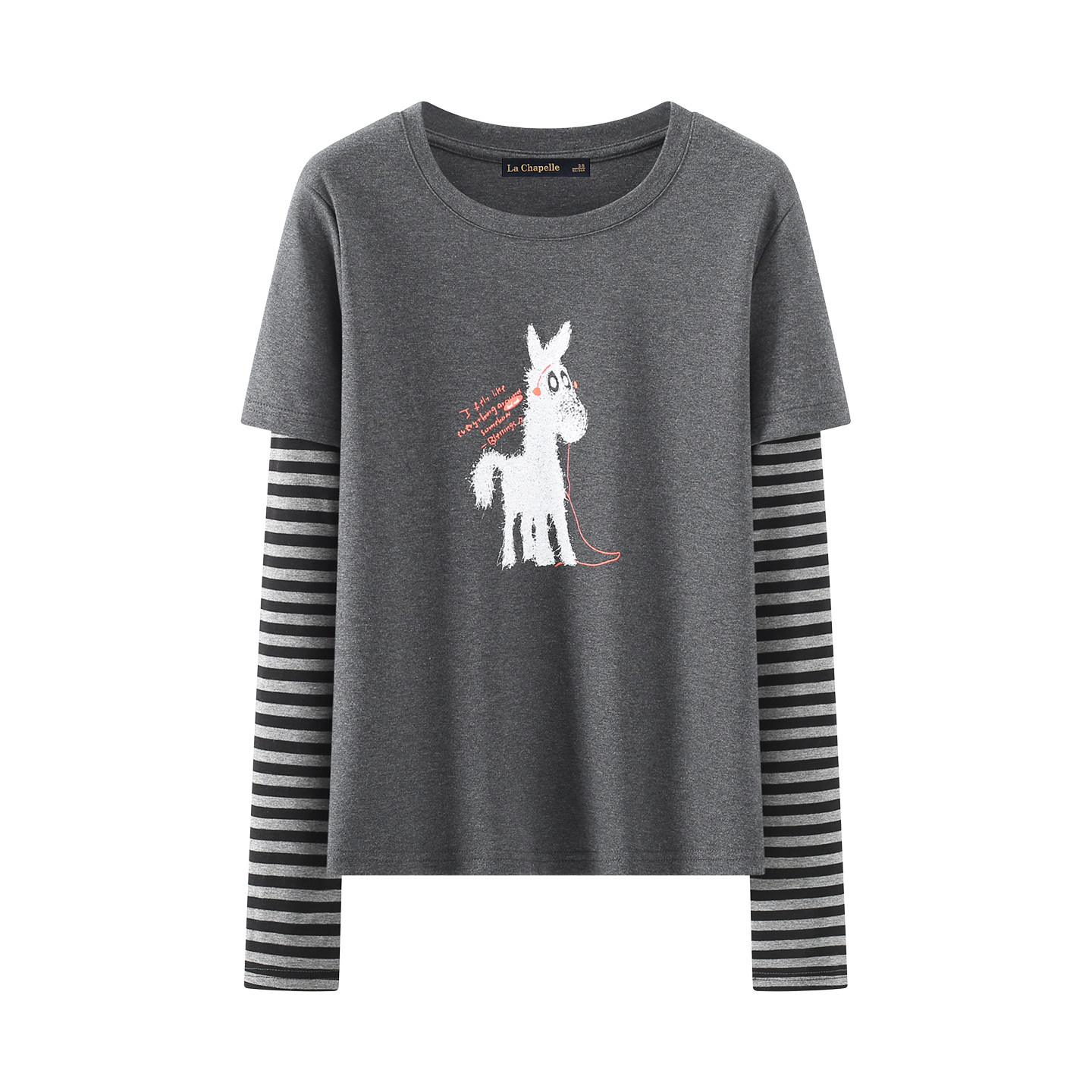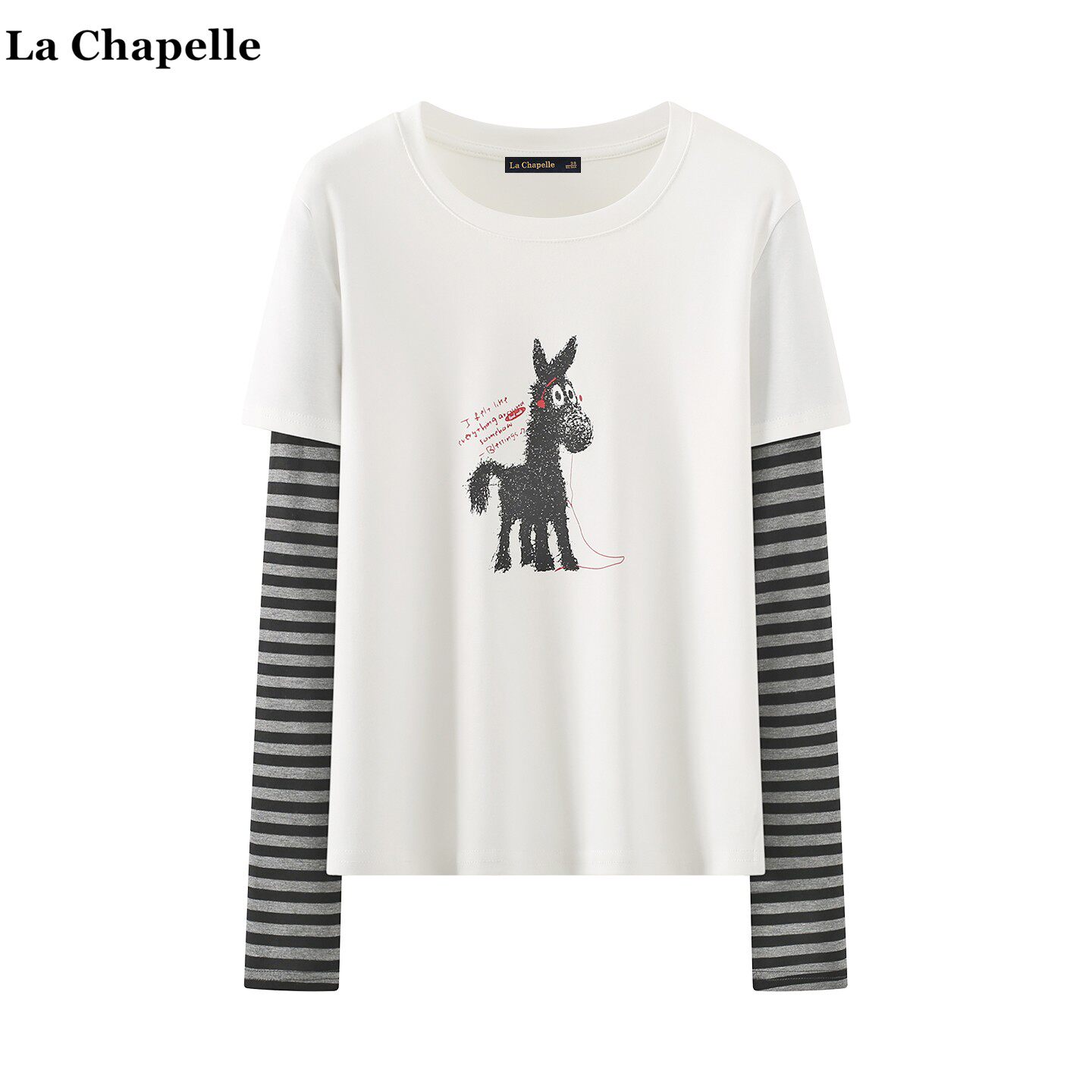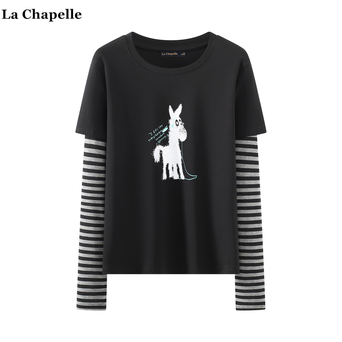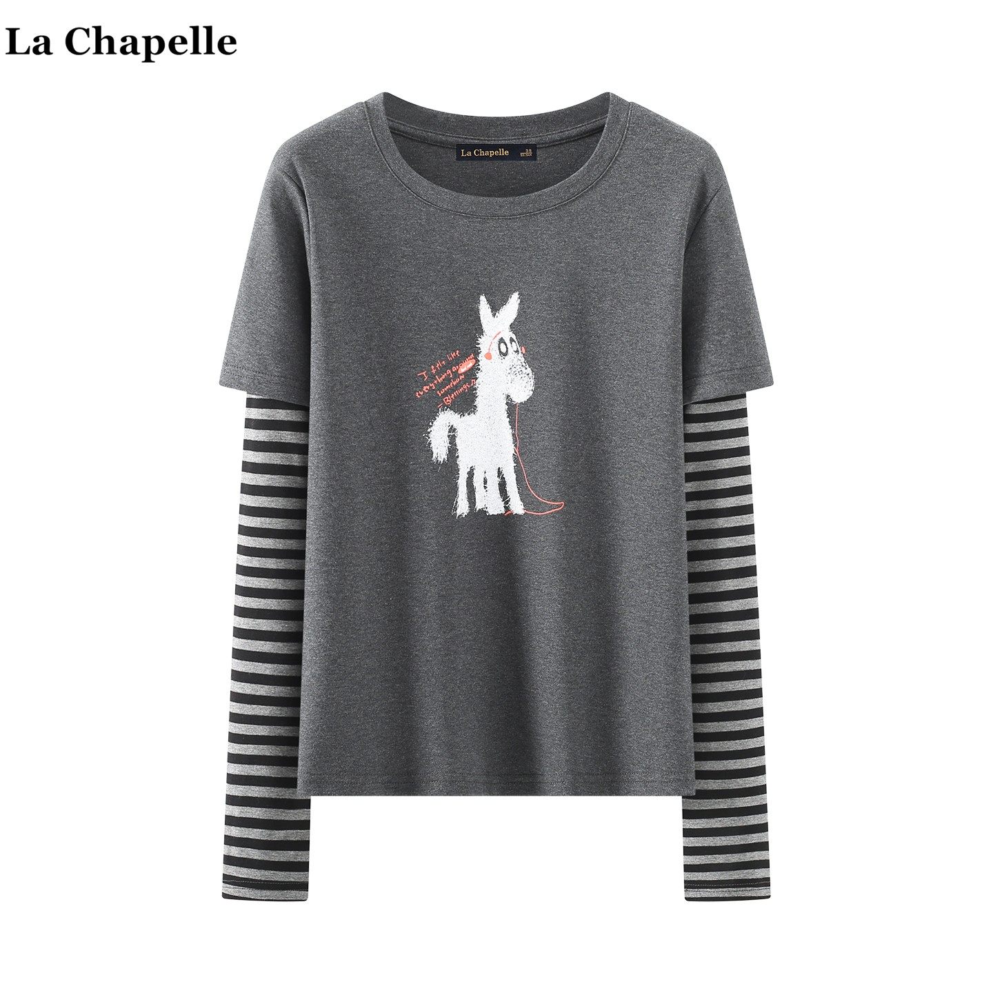 📚 拉夏贝尔/La Chapelle学院风卡通条纹长袖T恤女2026春假俩件上衣