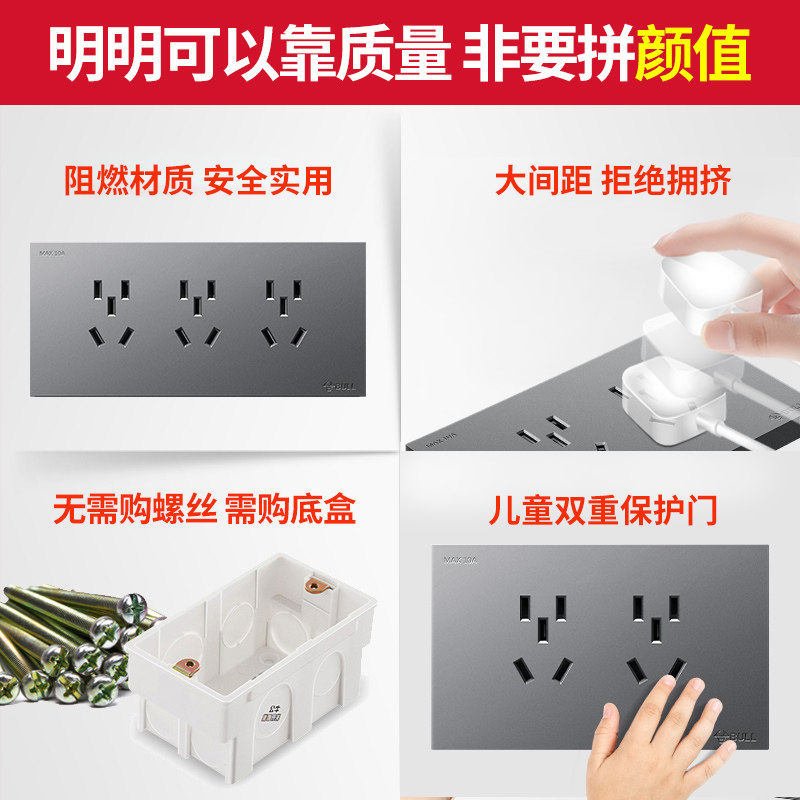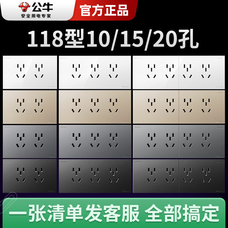 📚 公牛118型开关插座墙壁家用9孔12孔15孔暗装带开关G27G57多孔面板