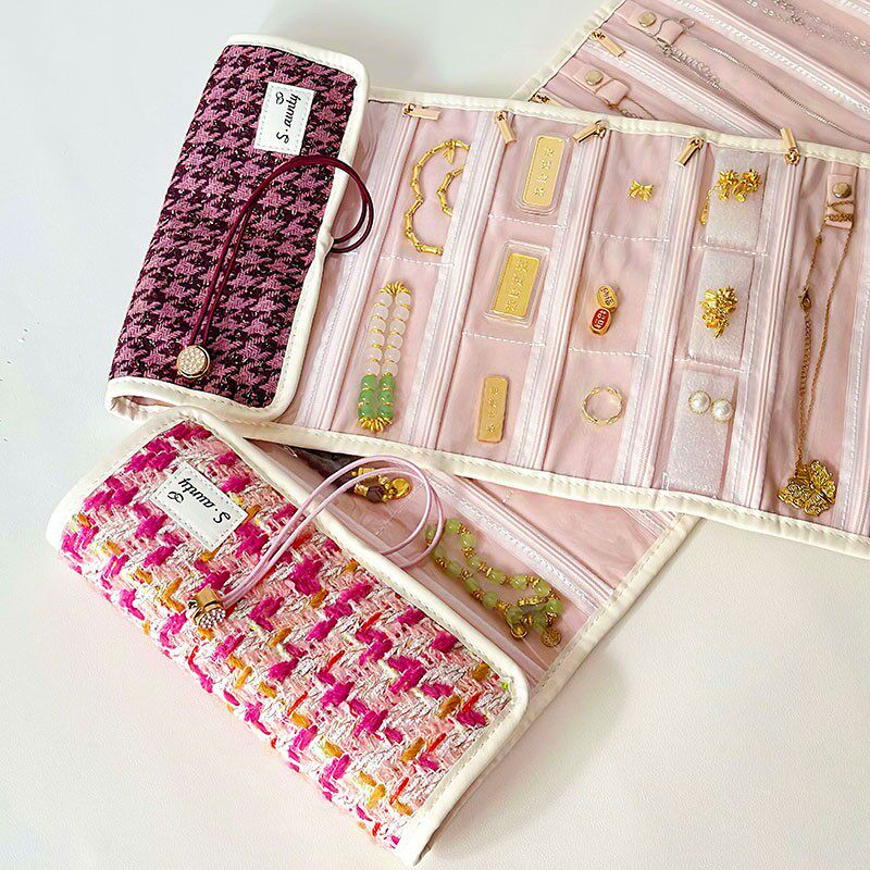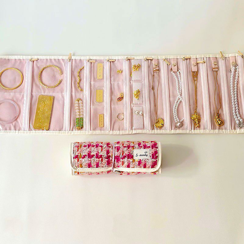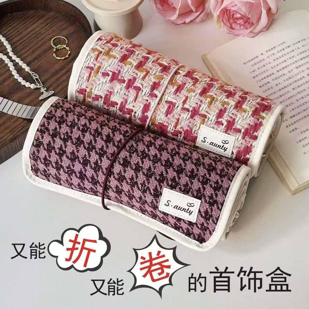 📚 首饰盒/箱 生日礼物小香风黄金首饰收纳袋加长铺盖卷首饰包首饰盒