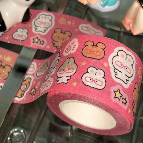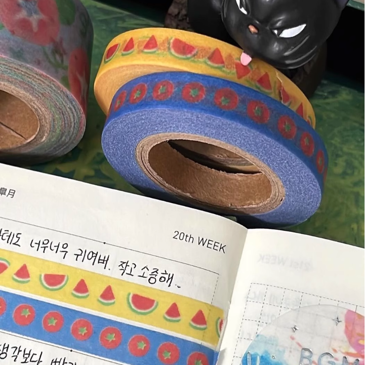 📚 胶带分装韩国yoongo黄色星星复古番茄眼镜兔拉条手帐素材和纸胶带