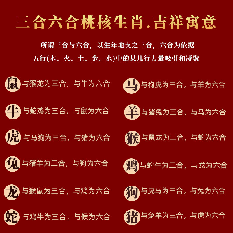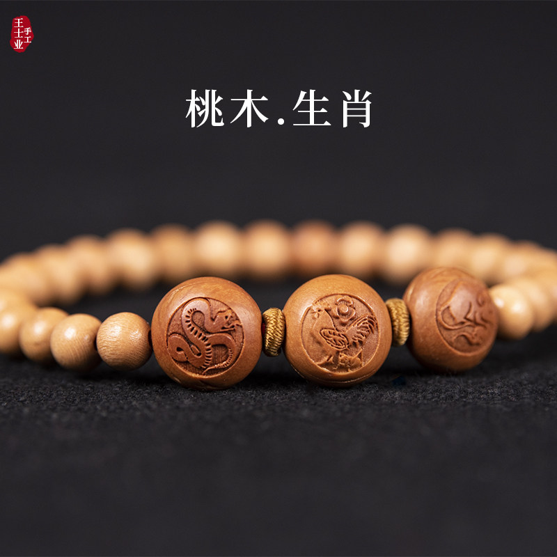 📚 三合手链桃核木六合本命年红绳男女属虎蛇鸡牛兔平安龙年生肖手串
