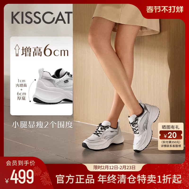 📚 KISSCAT接吻猫春季5CM增高银色老爹鞋女网面运动跑鞋厚底休闲鞋女