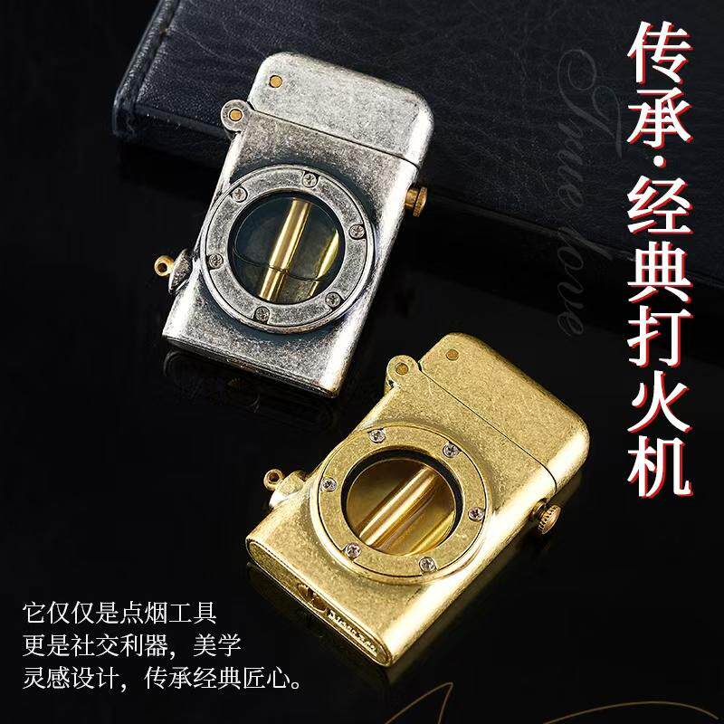 📚 新款经典托伦斯透明仓煤油打火机复古机械按压开盖一键弹射点火潮