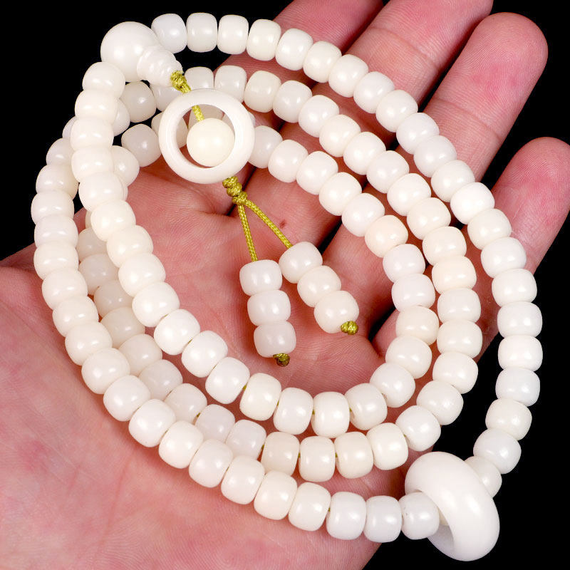 📚 精工白玉菩提根带跑圈老型桶珠文玩佛珠108藏式念珠男女手链项链