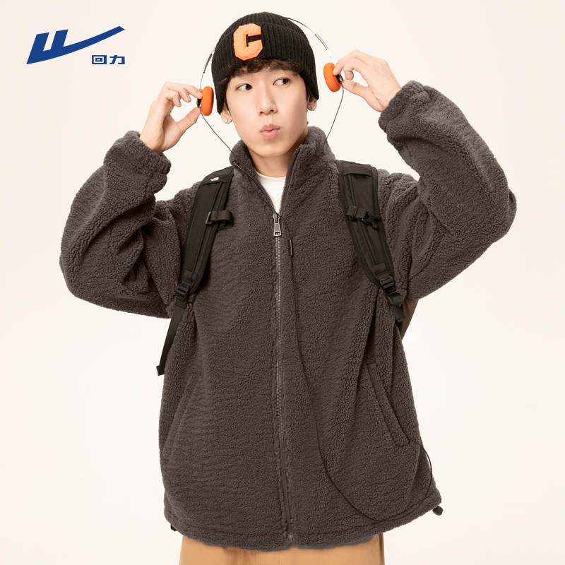 📚 回力羊羔绒外套男秋冬加厚保暖双面颗粒绒棉服皮毛一体立领夹克Y