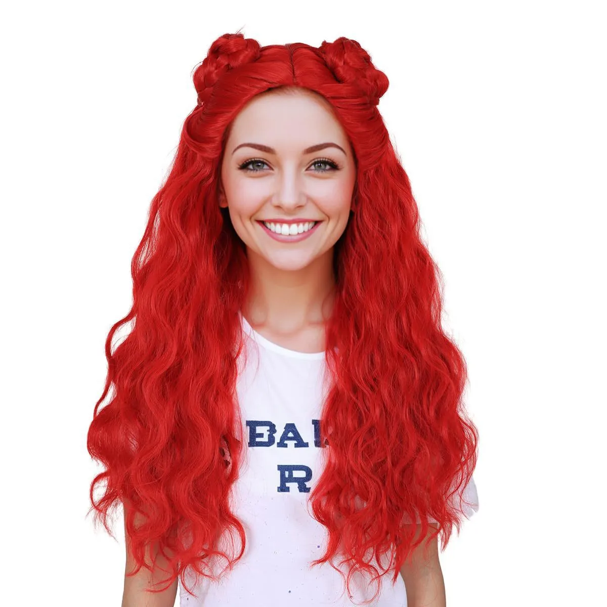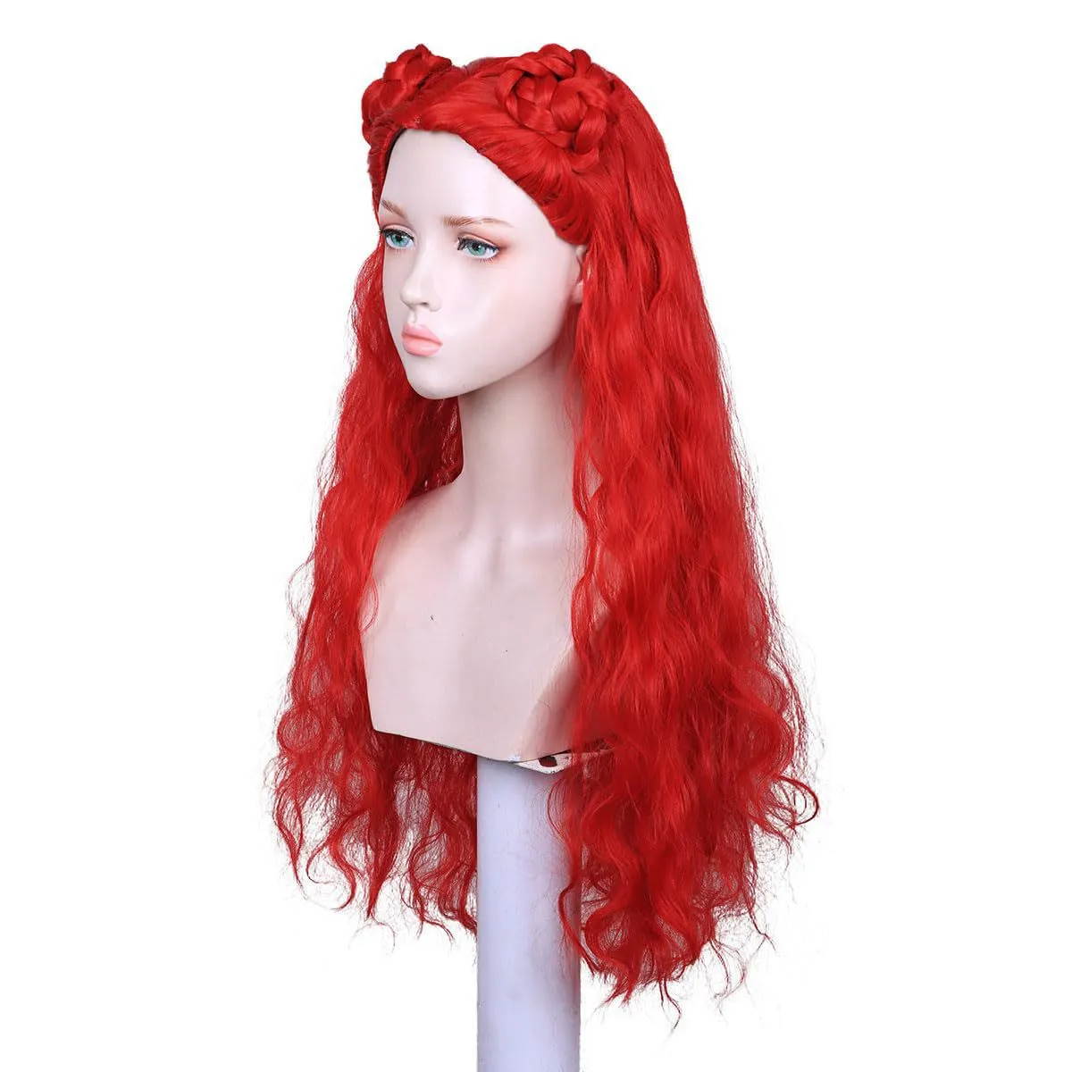📚 跨境新款欧美电影后裔4假发星光继承者红色万圣节Cosplay长卷假发