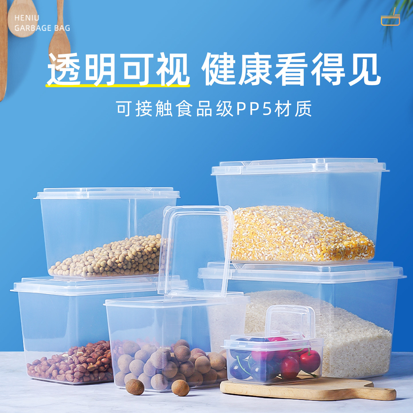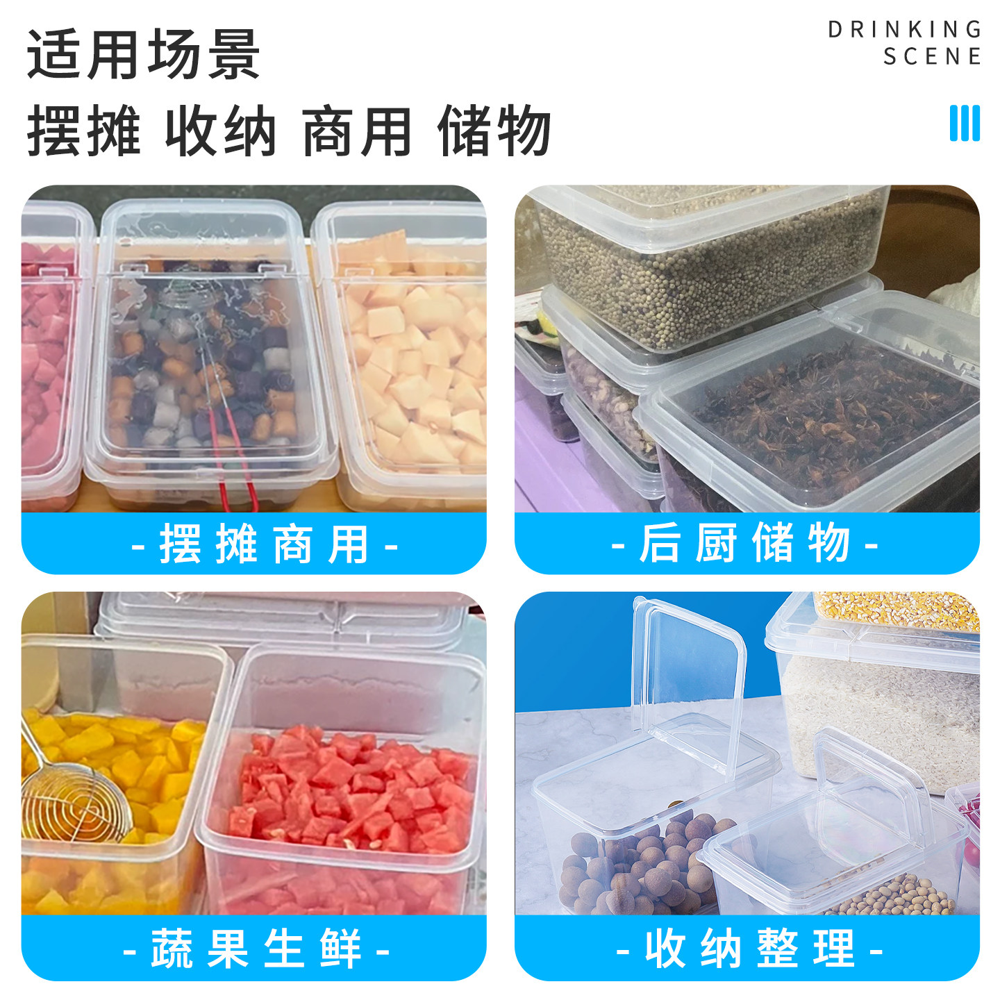 📚 超市展示盒塑料盒子透明翻盖保鲜盒加高加厚杂粮调料半掀开收纳盒