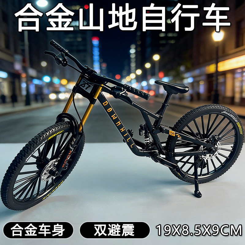 📚 仿真金属前后减震速降自行车玩具模型软尾山地车赛车迷你单车摆件