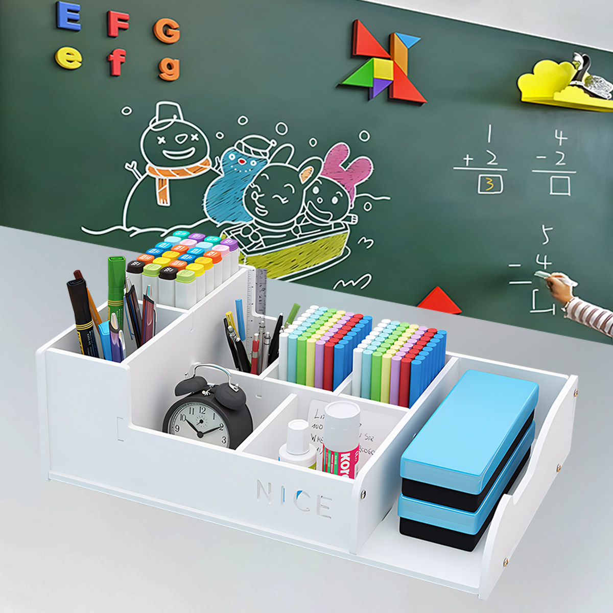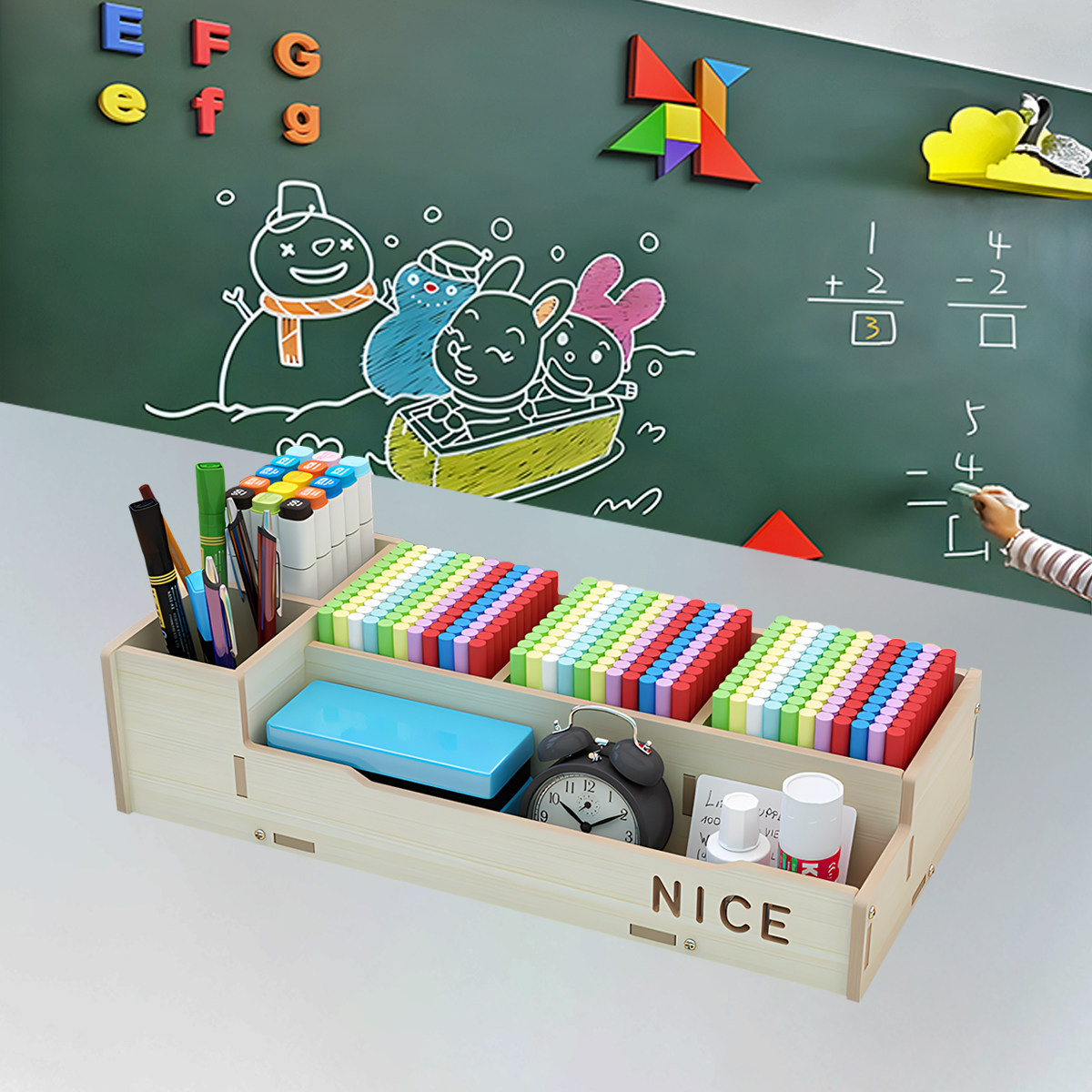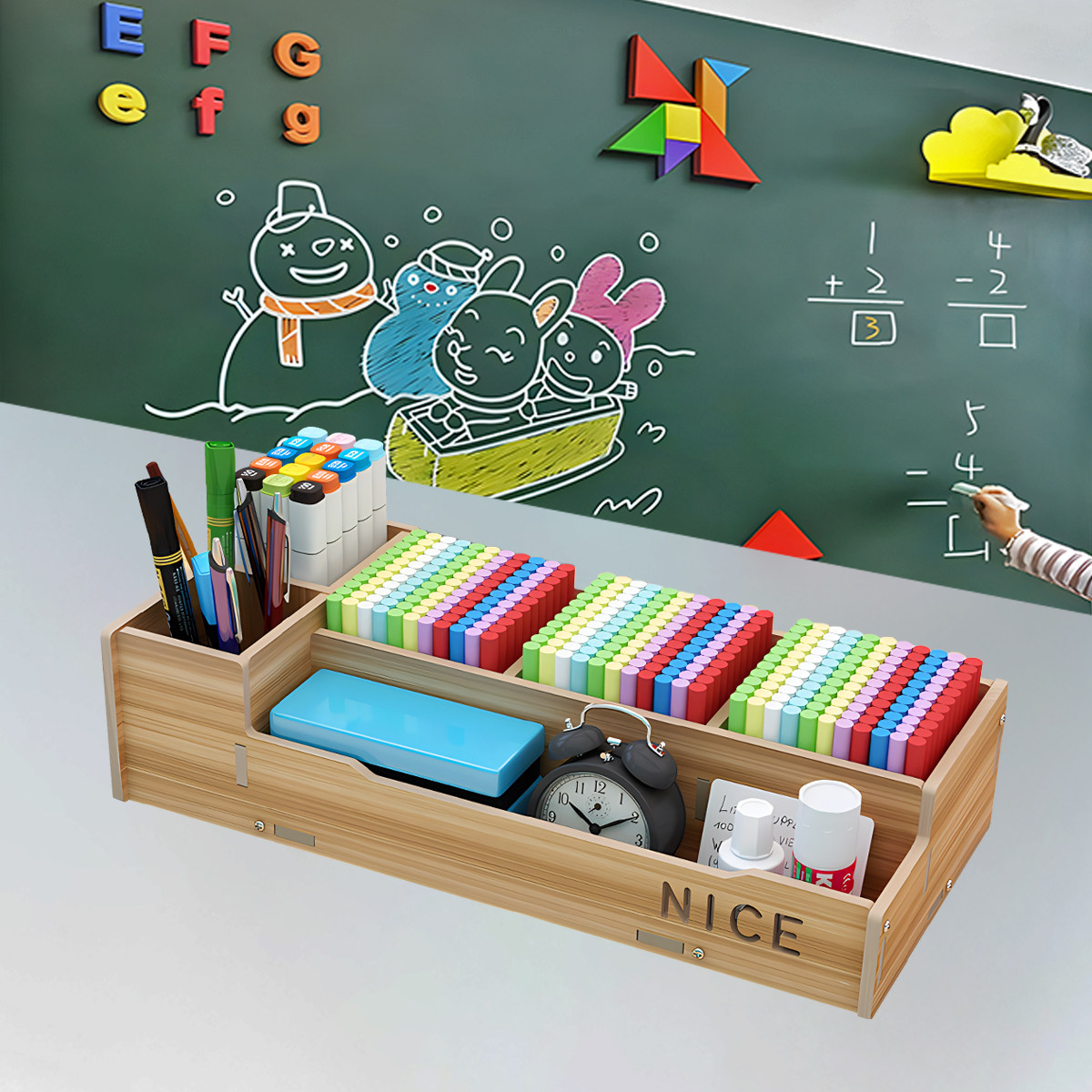 📚 粉笔盒收纳盒讲台学校教室讲桌粉笔盒木质办公桌面多功能整理简约
