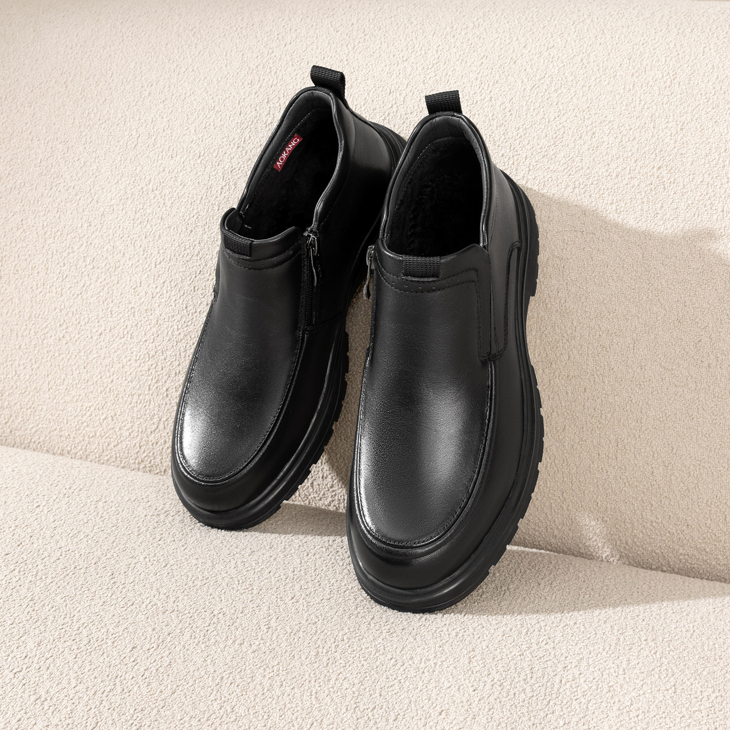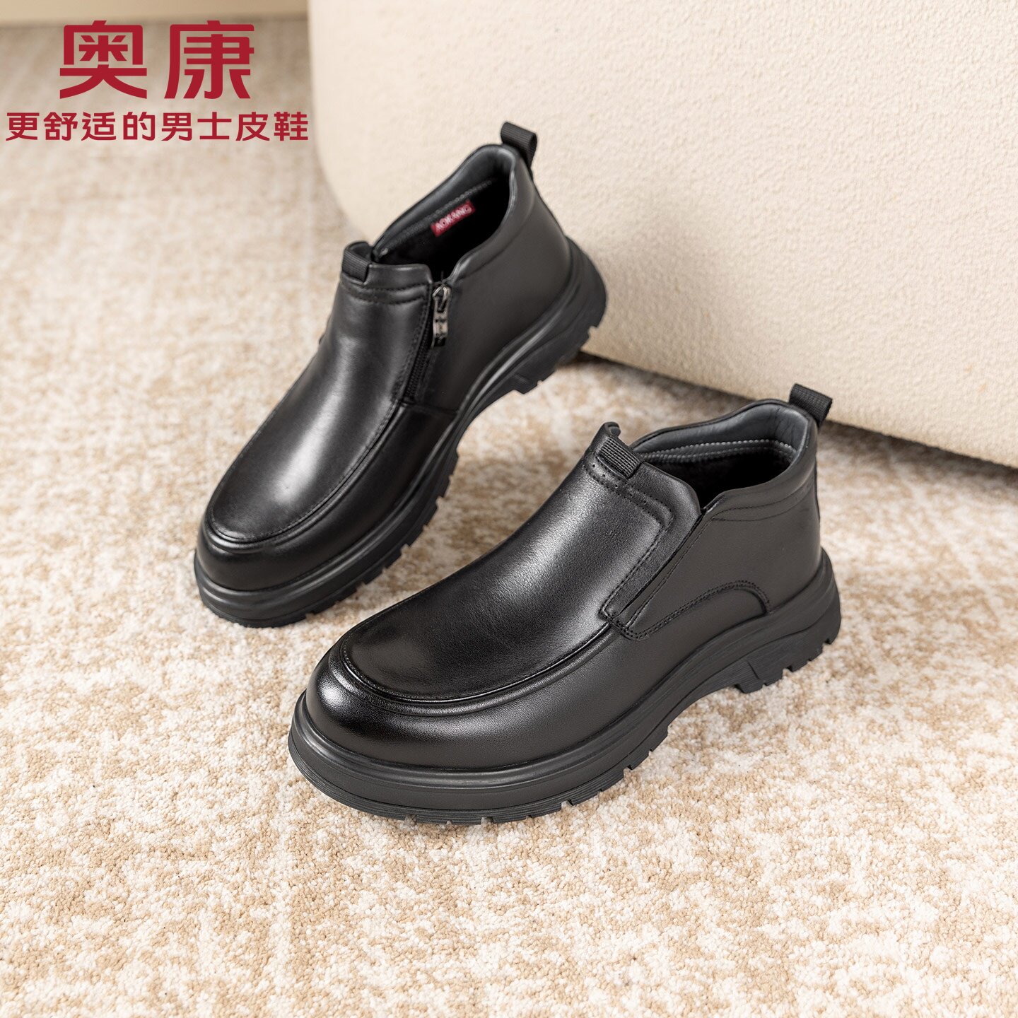 📚 奥康皮鞋男加绒冬季保暖爸爸棉鞋男款真皮软底一脚蹬防滑冬天男鞋