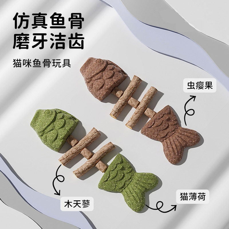 📚 猫咪玩具猫薄荷鱼骨头木天蓼磨牙棒仿真鱼洁齿木棒自嗨解闷逗猫鱼