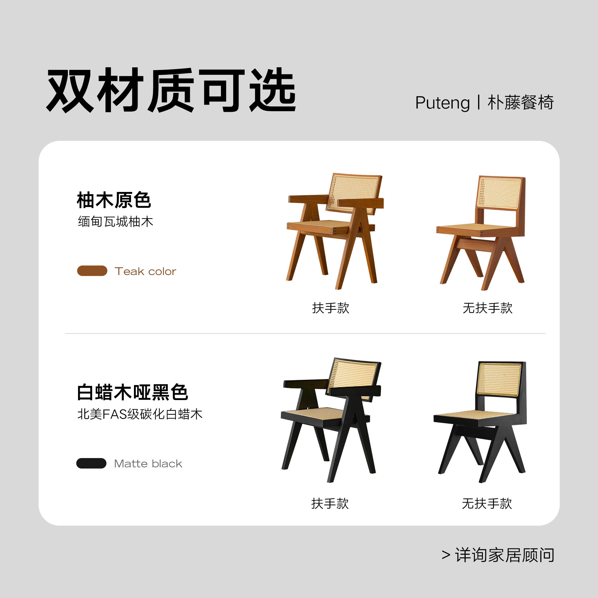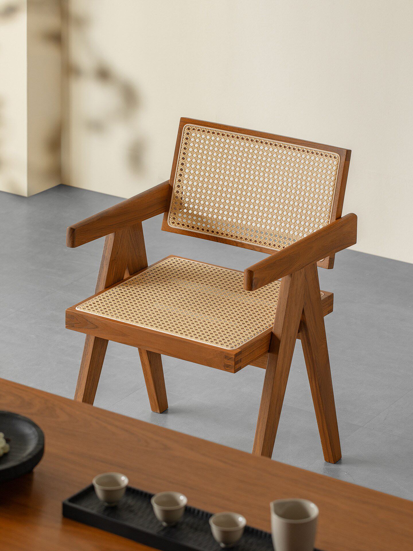 📚 梵也家具朴藤藤椅现代简约昌迪加尔椅实木藤编椅靠背扶手黑色家用