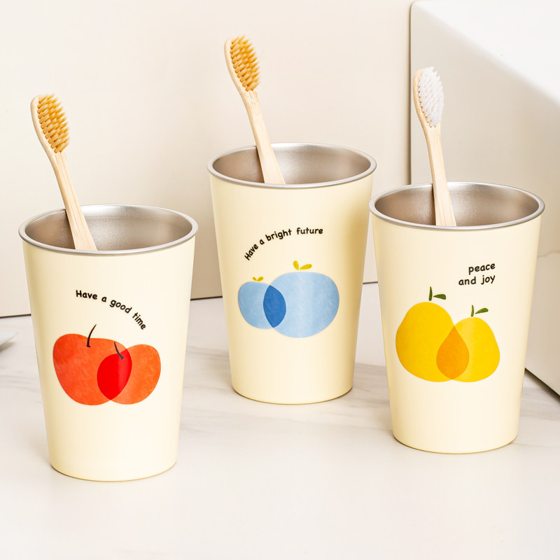 📚 ins多巴胺漱口杯儿童牙杯一家三口情侣牙刷杯高颜值不锈钢洗漱杯