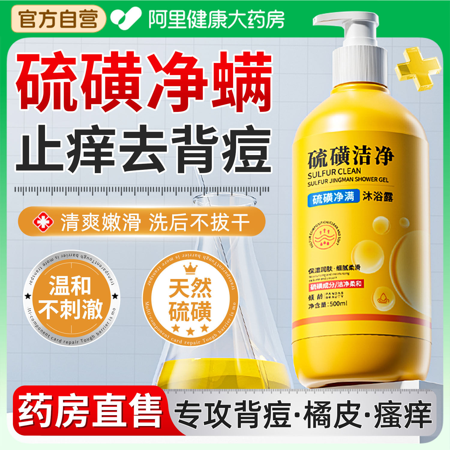 📚 硫磺除螨沐浴露皮肤瘙痒后背祛痘去鸡皮肤保湿止痒控油持久留香