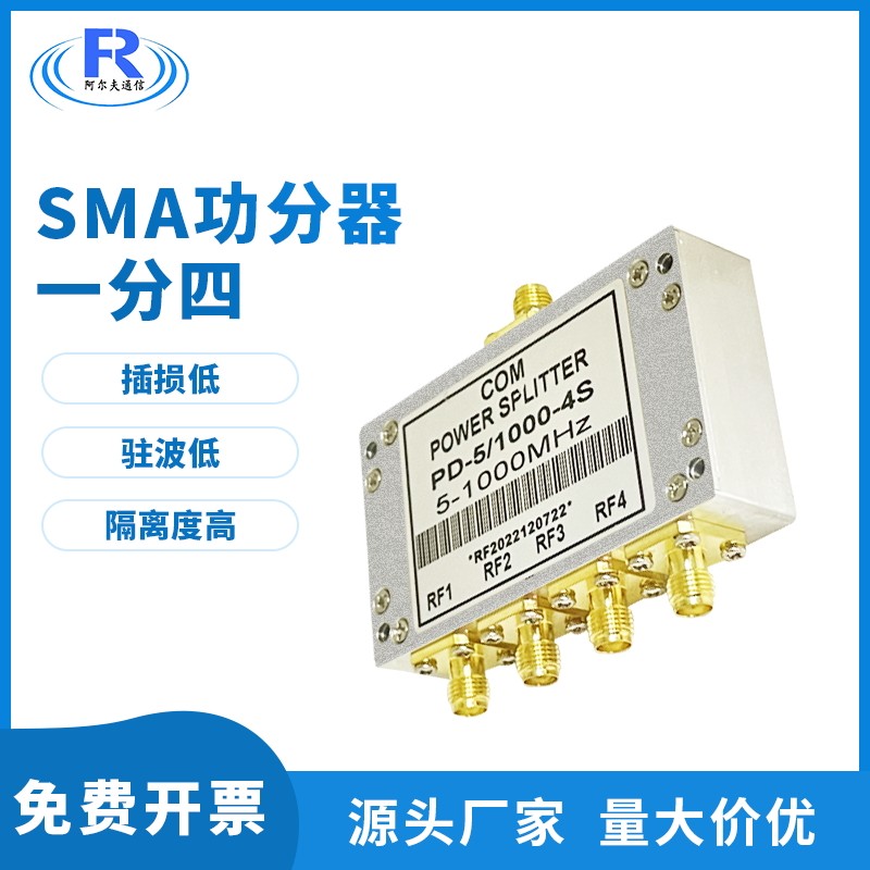 📚 SMA功分器电阻功率分配器一分四5-1000MHz新低频一分四功分器
