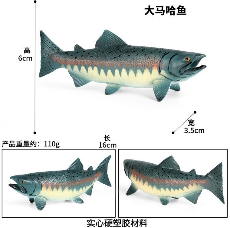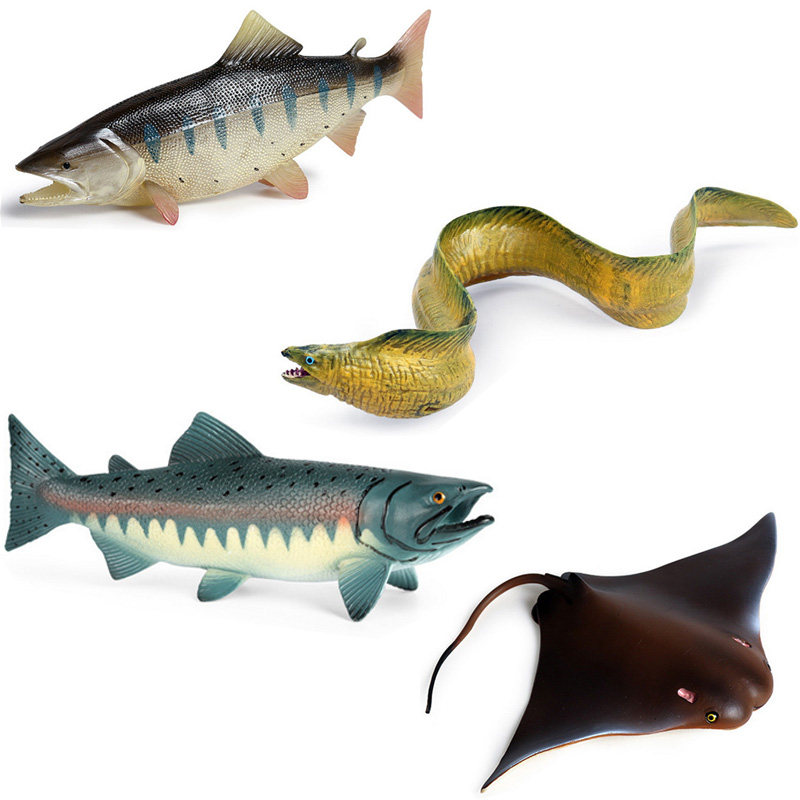 📚 三文鱼仿真模型大马哈鱼鲑鱼橡胶塑料玩具海鳗鱼电鳗鳐鱼海洋动物