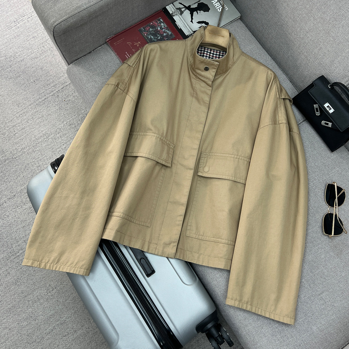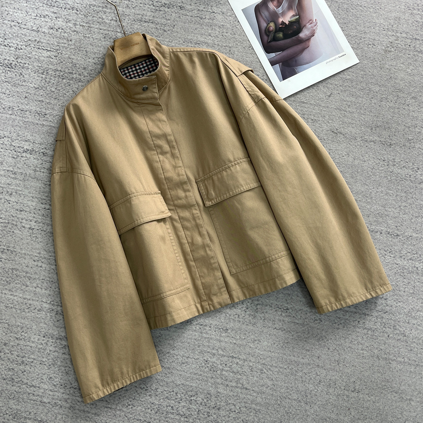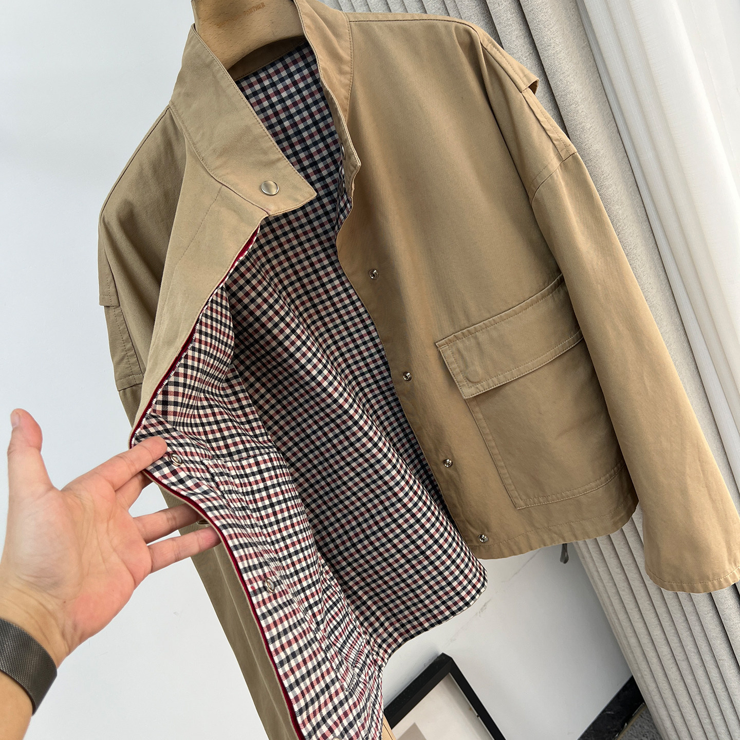 📚 ED长绒棉双面穿日系工装风立领短款风衣宽松双口袋时尚小个子外套