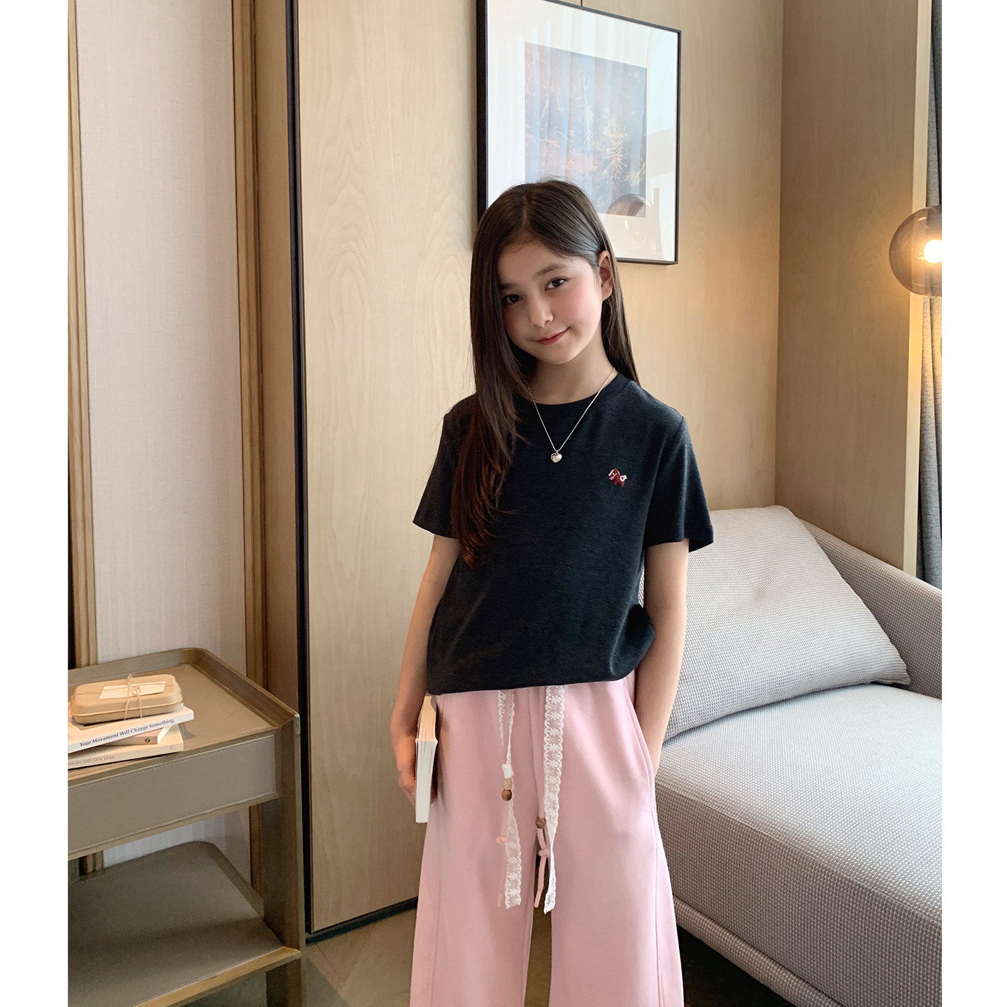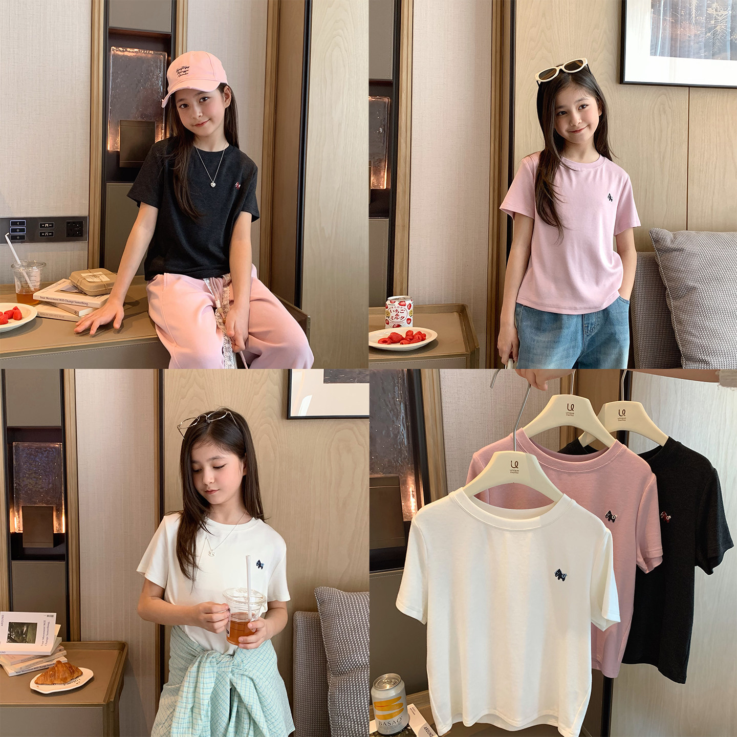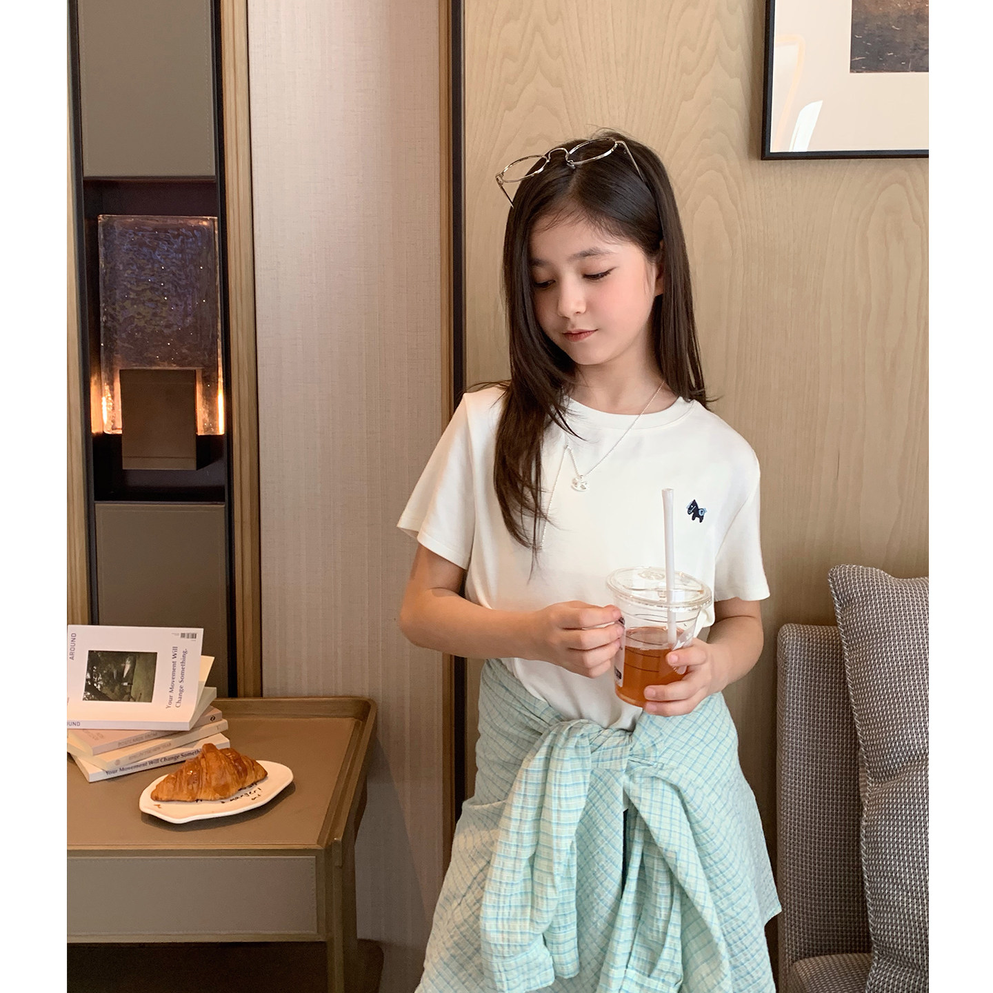 📚 女大童刺绣小版面膜T恤2026夏季新款青少年显瘦软糯短袖亲子基础T