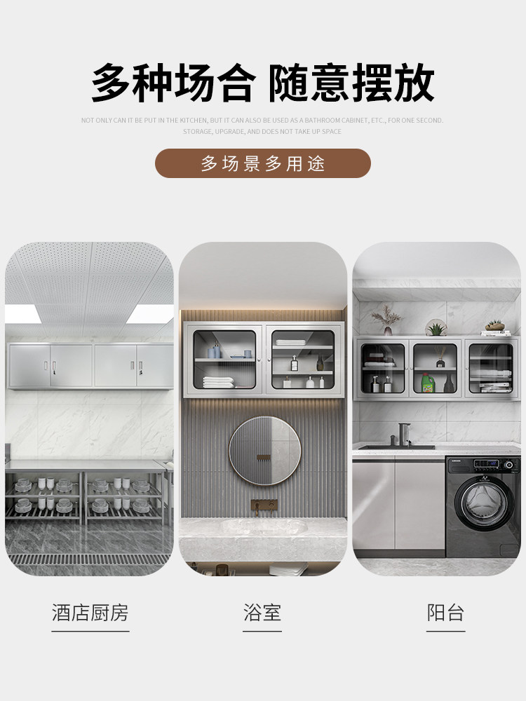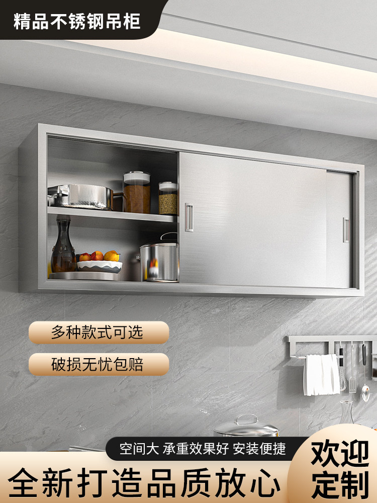 📚 定制不锈钢厨房吊柜阳台墙壁柜定做餐厅卫生间推拉门上墙置物柜子