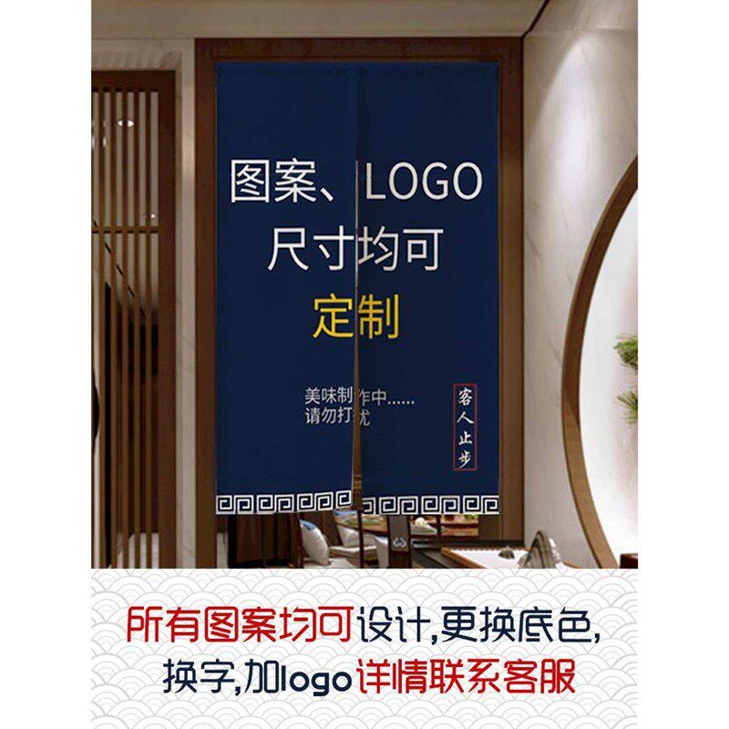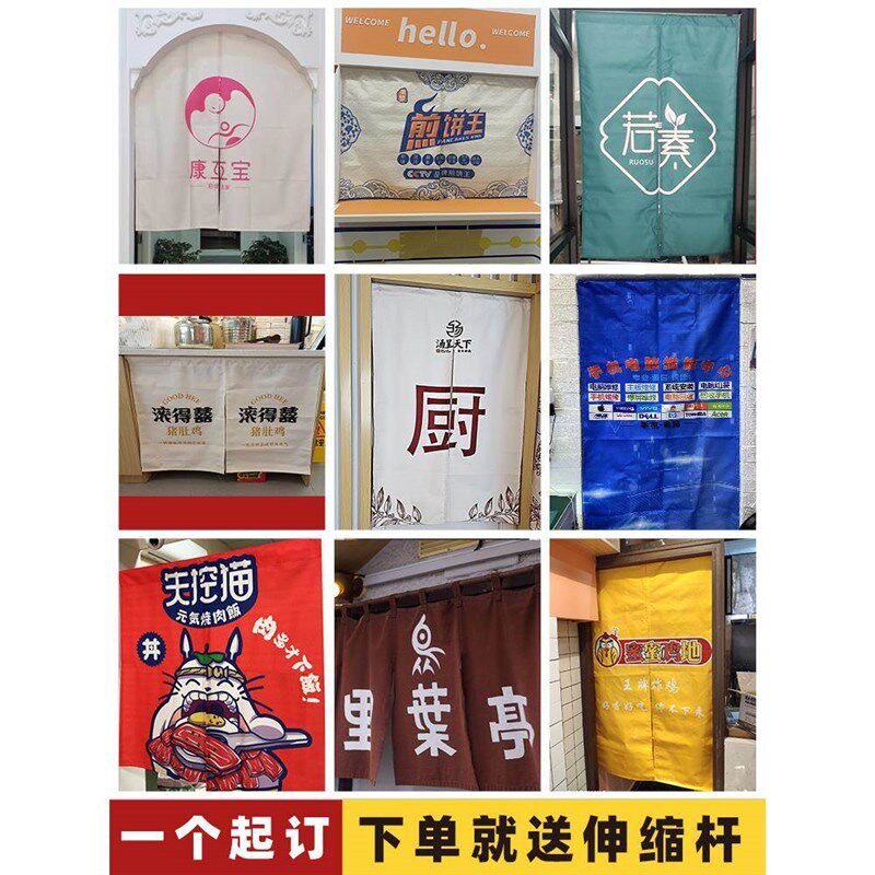 📚 门帘定制logo厨房门帘布防油烟免打孔半帘半截遮挡商X用挂帘隔断
