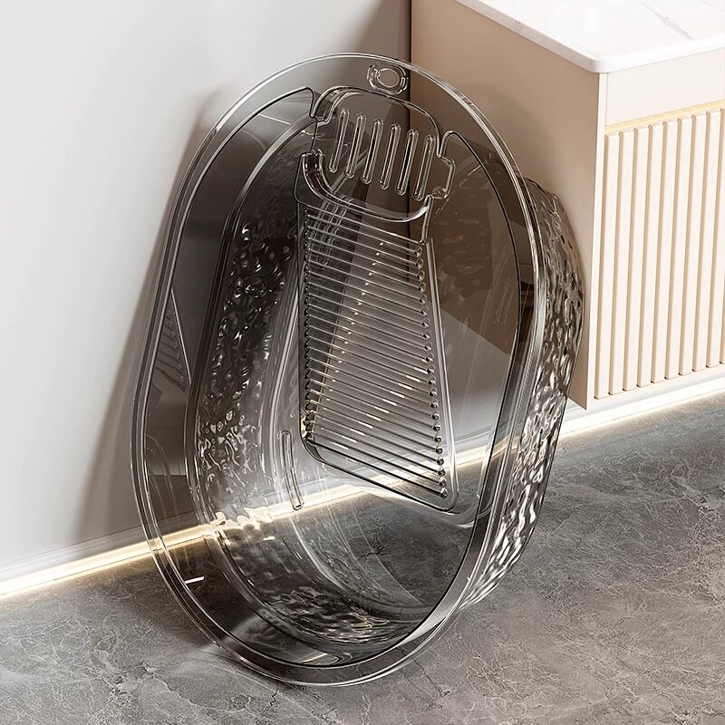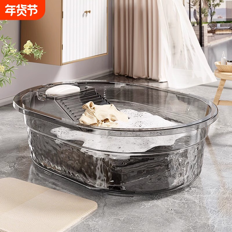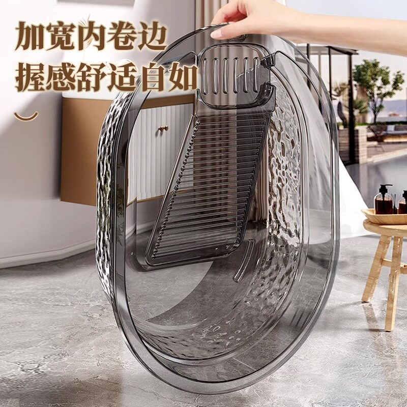 📚 洗衣盆带搓衣板一体式神器加厚脸盆洗衣桶塑料搓衣大盆透明搓洗