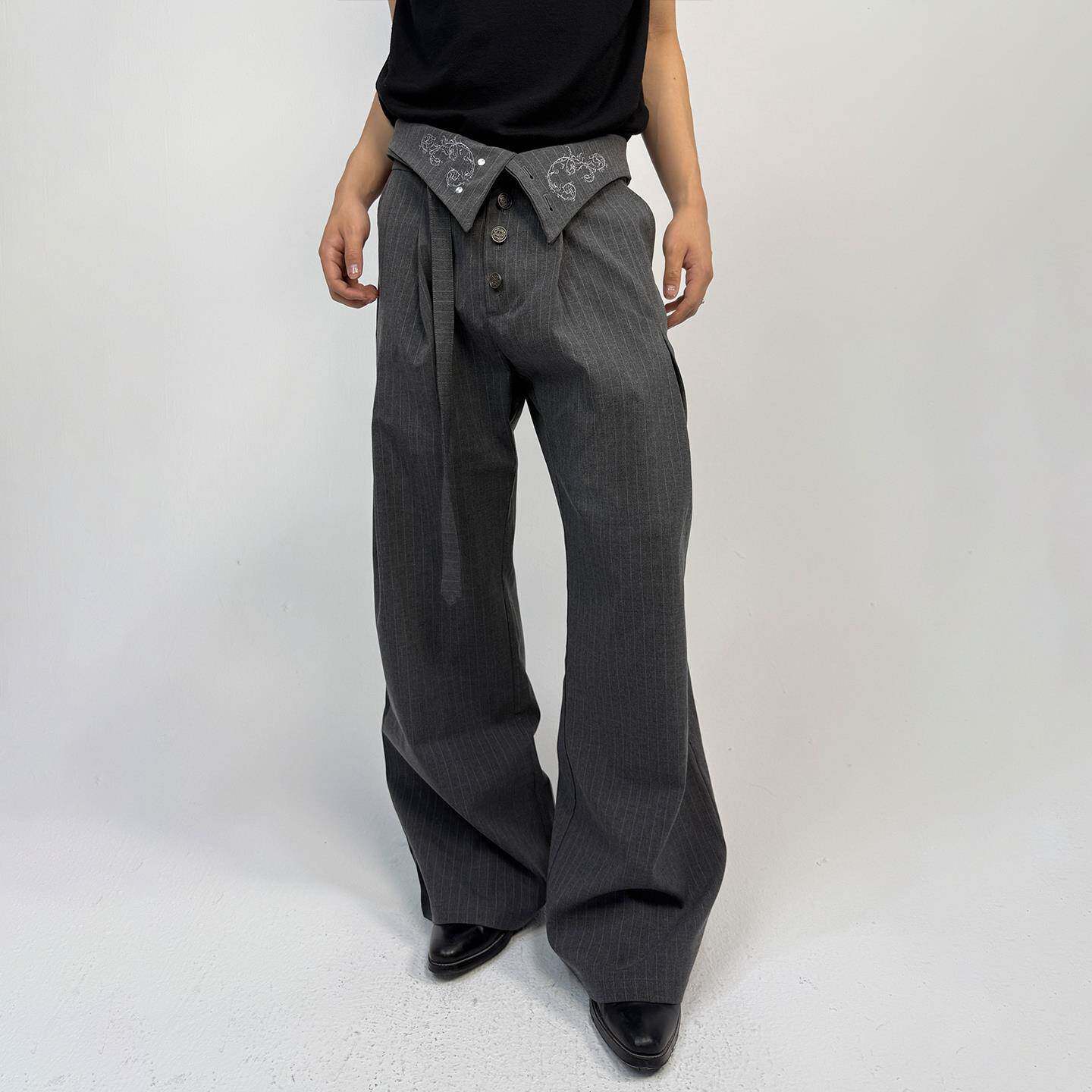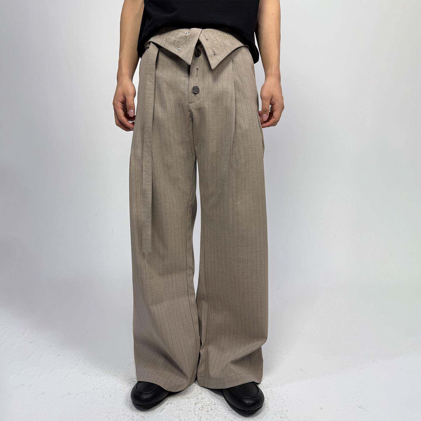 📚 Hypeyourself 「积淀」禅宗打褶刺绣微喇高腰条纹剑道残心西裤