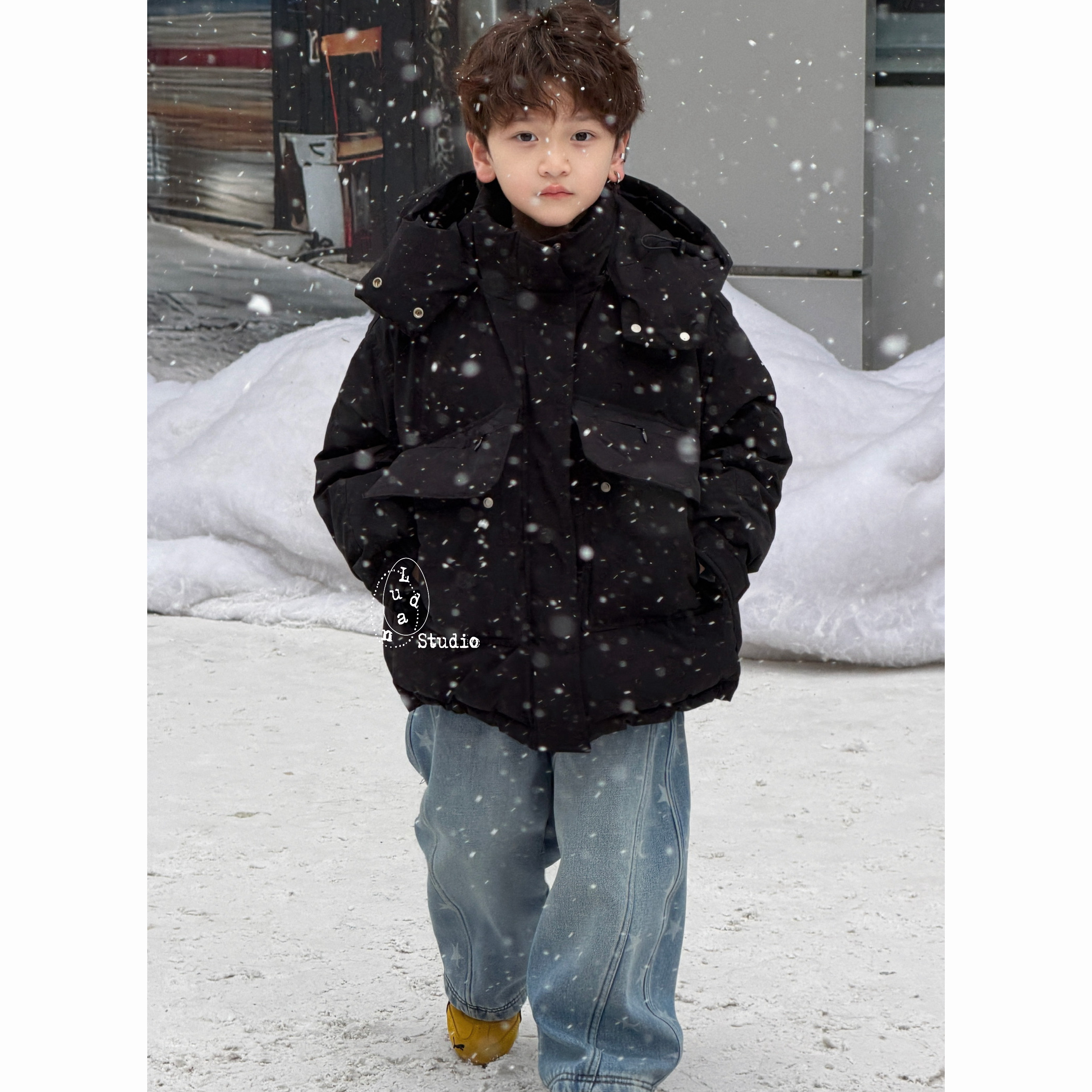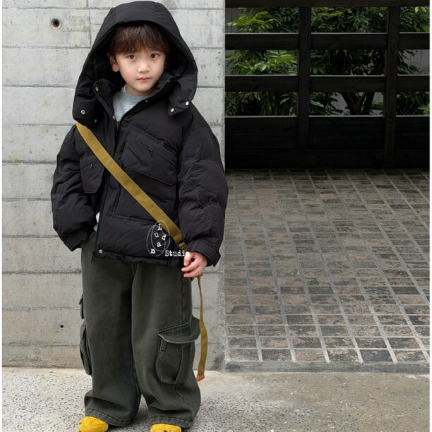 📚 卤蛋童装·冰川派克/冬潮酷黑色工装重工加厚羽绒服连帽中大男童